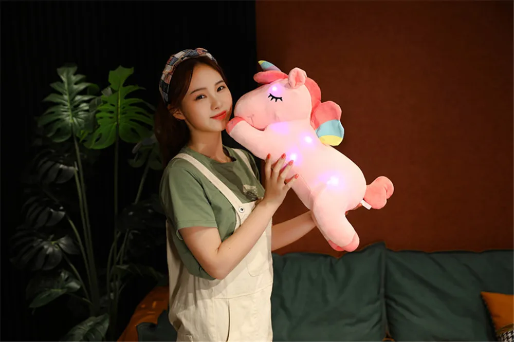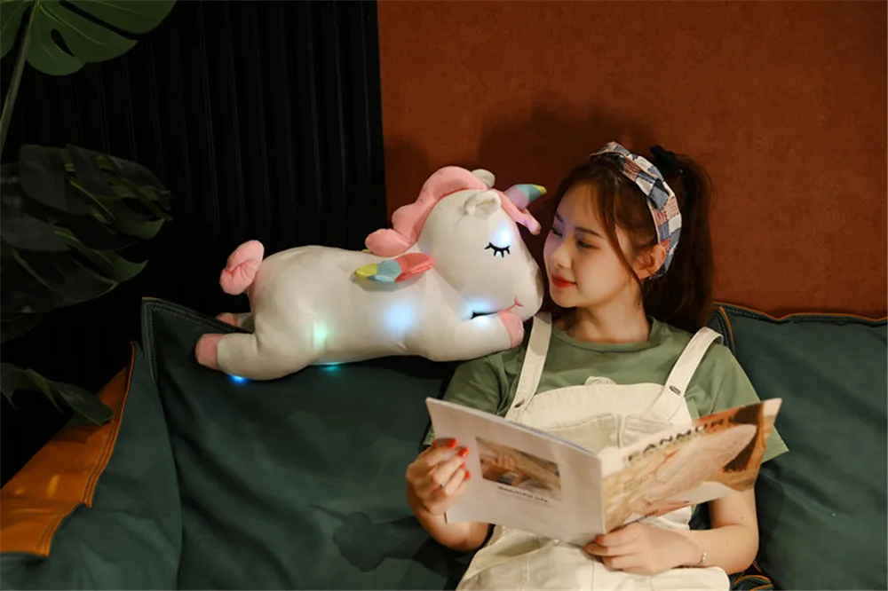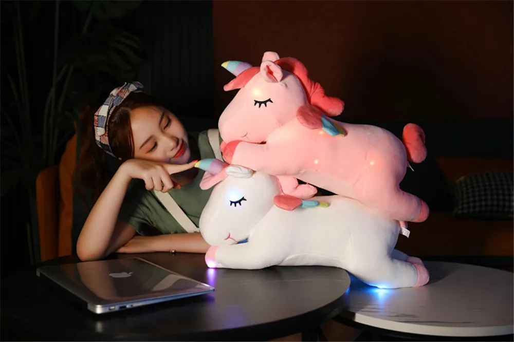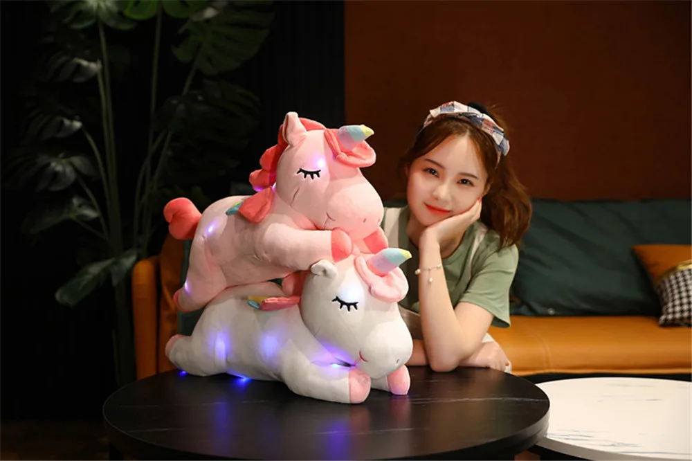 Прикольный единорожек,но не работает подсветка,очень жаль,что такой брак.А так мягкий,плюшевый.