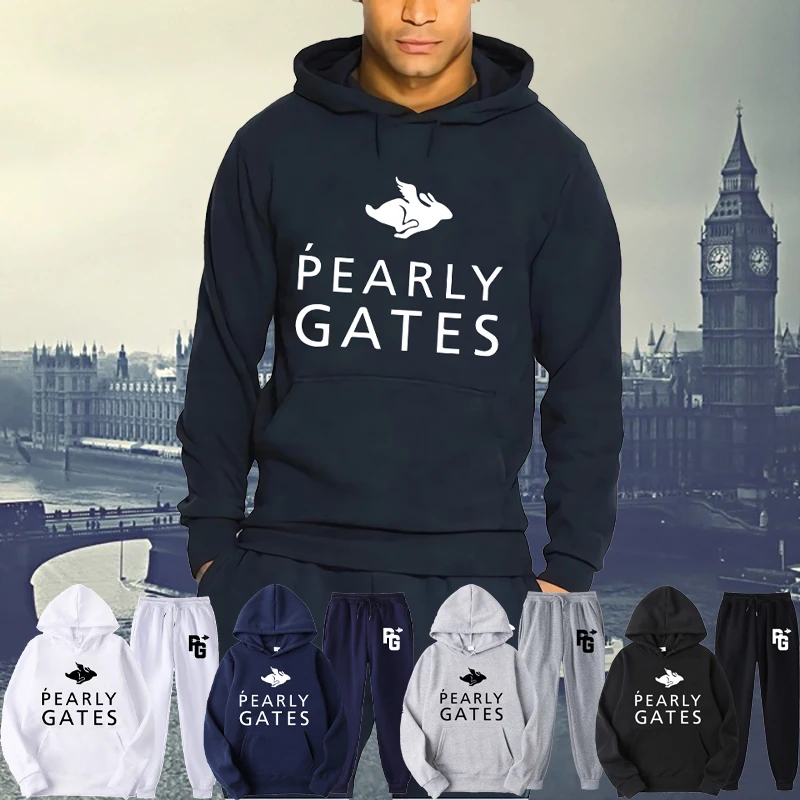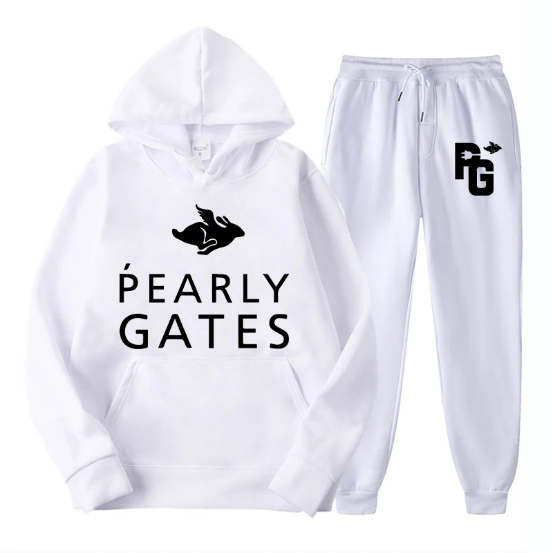 Мужской спортивный костюм, толстовка с жемчужным принтом и спортивные штаны, однотонный пуловер, 2021