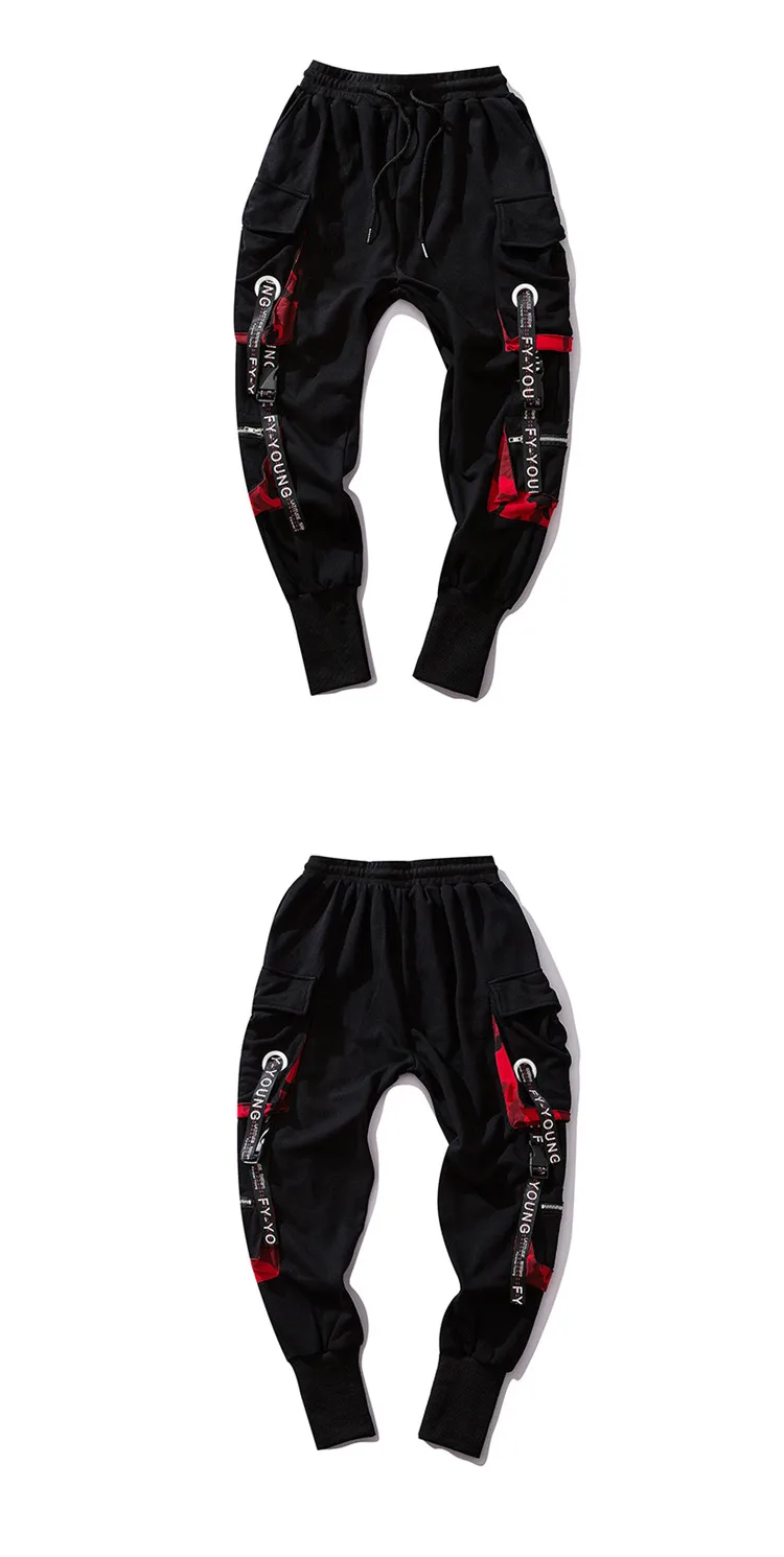 Джоггеры GODLIKEU в стиле хип-хоп, Мужские штаны-карго с лентами и надписями, тактические повседневные мужские брюки, спортивные брюки, уличная одежда