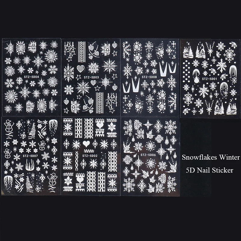 2022 рождественский стиль тисненые слайдеры зимние аксессуары для маникюра художественные наклейки для гель-лака 5D Белые снежинки новогодние наклейки для ногтей