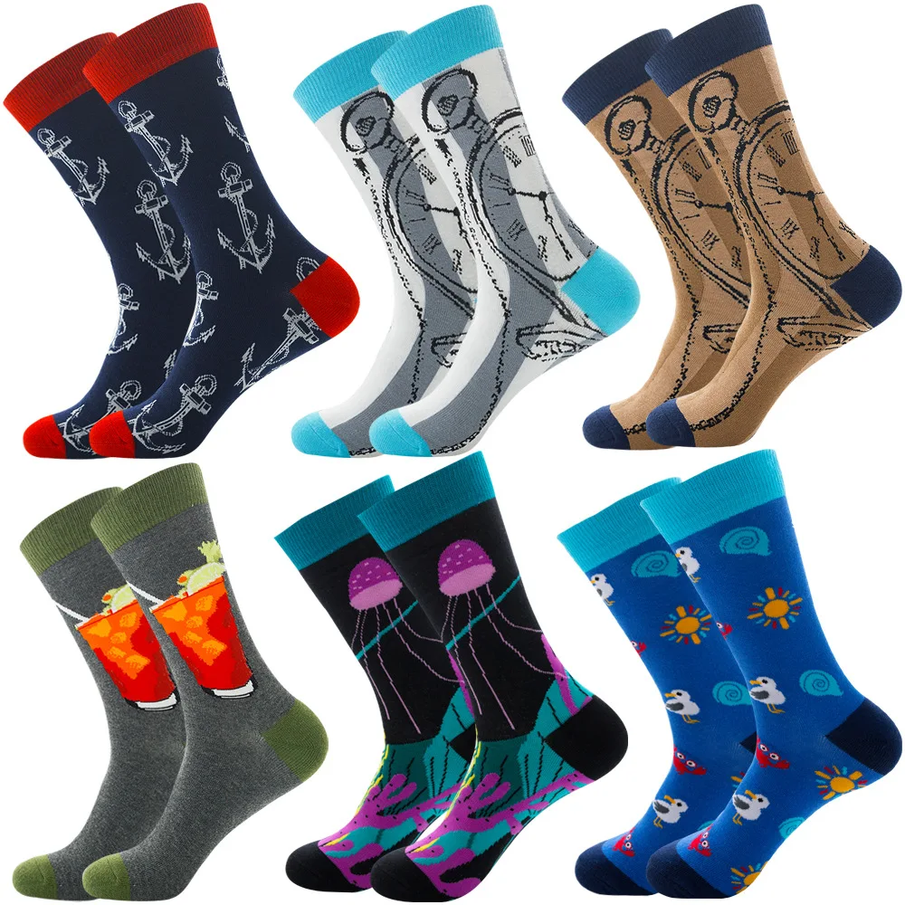 6 пар модных и интересных носков разных цветов, счастливая планета ...