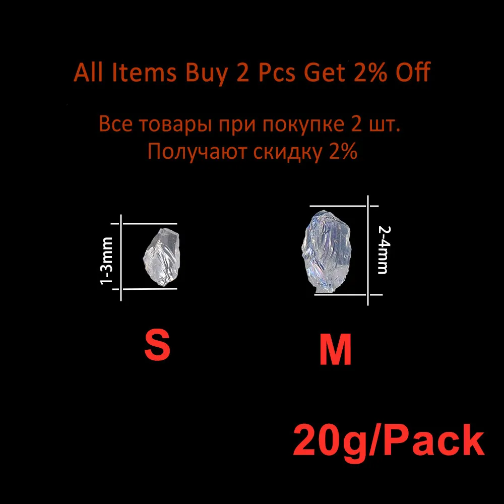 Состояние на 100% абсолютно новый и высокое качество Цвет: как на картинке Материал: разбитое стекло Посылка: 20 г/упак. Подходит: изготовление материалов ручной работы DIY ожерелье и браслет Примечание: поскольку разные компьютеры отображают цвета по-разному, цвет фактического товара может незначительно отличаться от приведенных выше изображений, спасибо за понимание