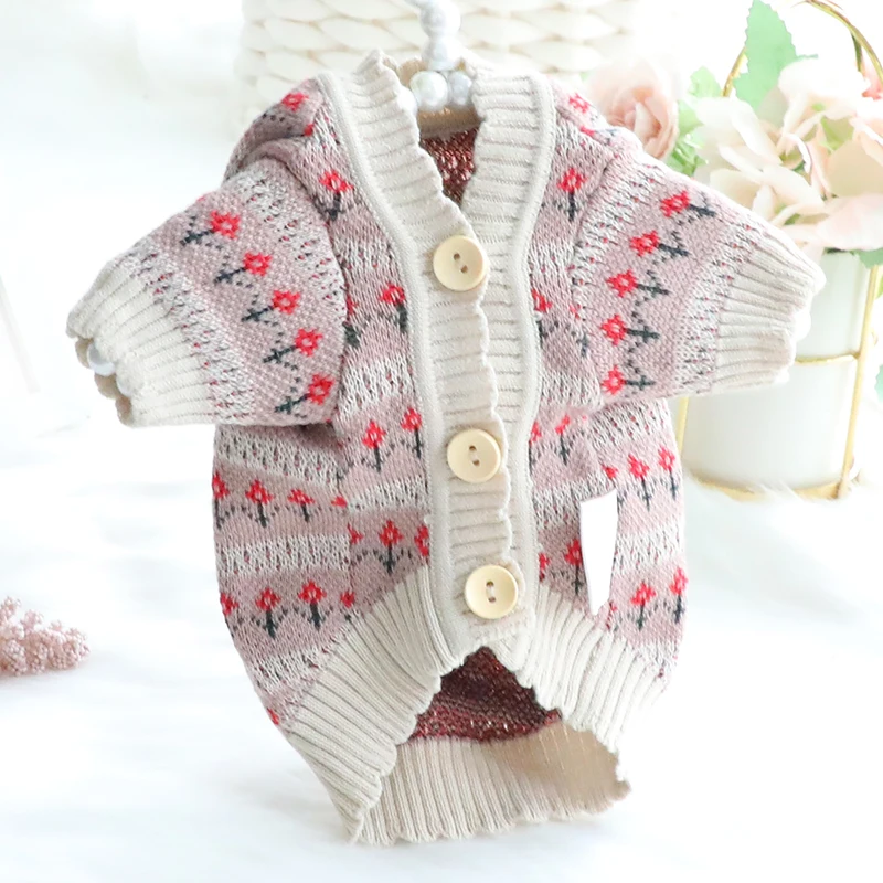 Новинка 2021, осенняя одежда для собак, свитер с маленькими цветами для собак, кардиган с застежкой на пуговицах, щенок, Бишон XS, S, M, L, XL