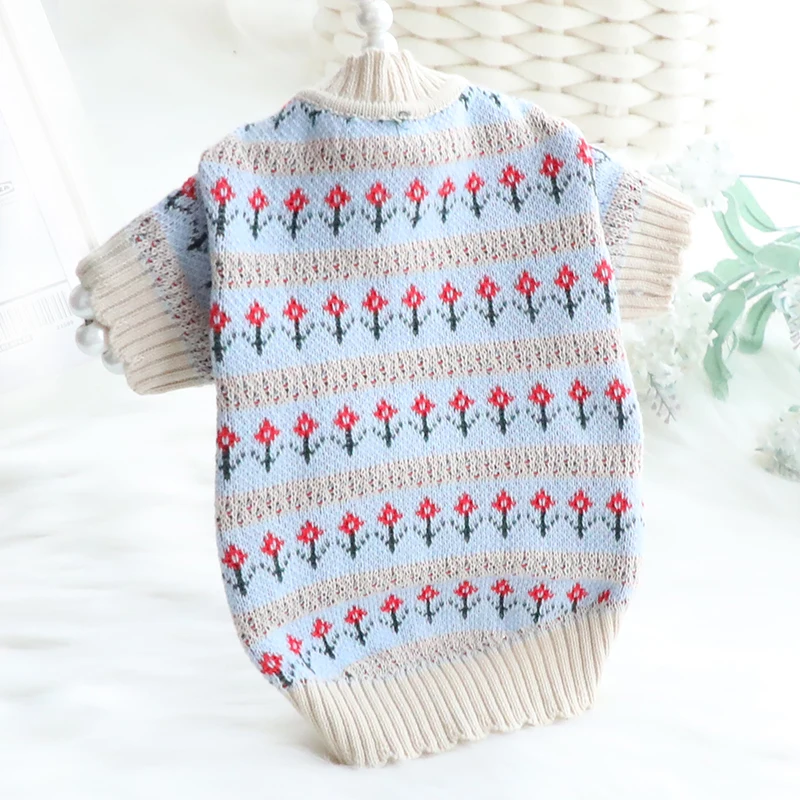 Осенняя одежда для собак, свитер с маленькими цветами для собак, ка...