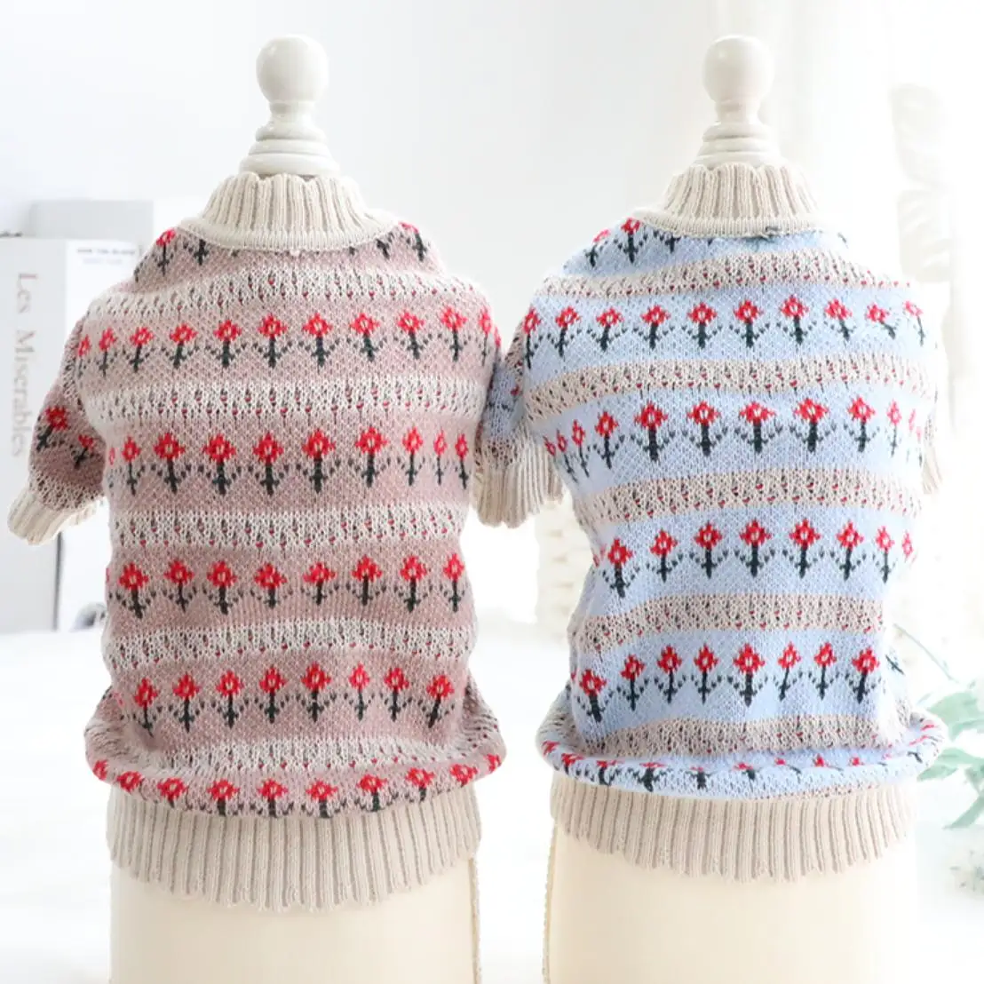 Свитер для собак с цветами, вязаный джемпер на осень и зиму, одежда...