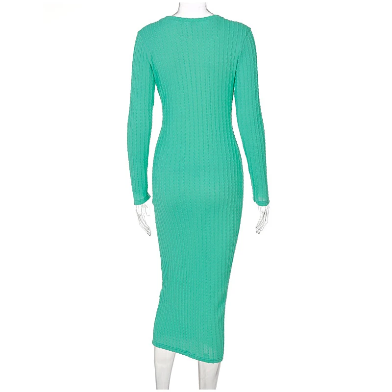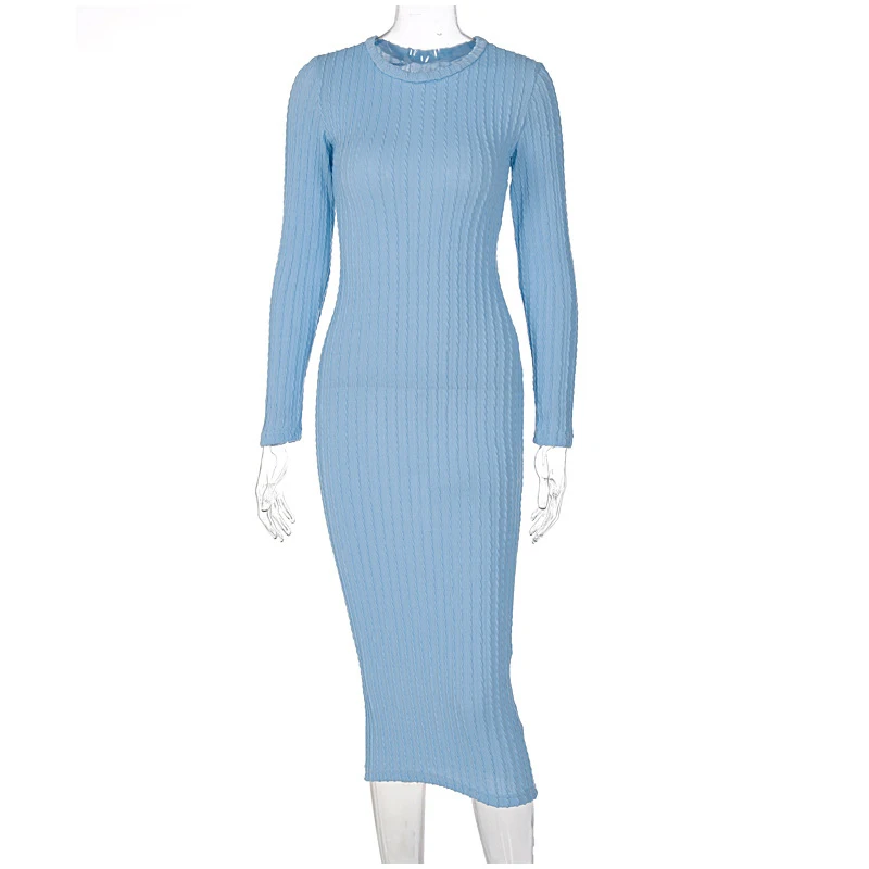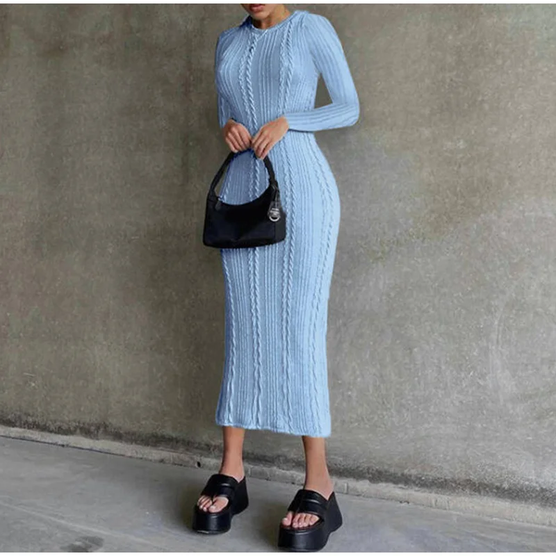 Style 1Women's Twist Knit Long Sleeve Ankle-length Dress