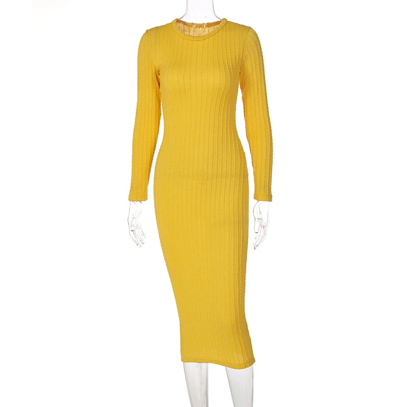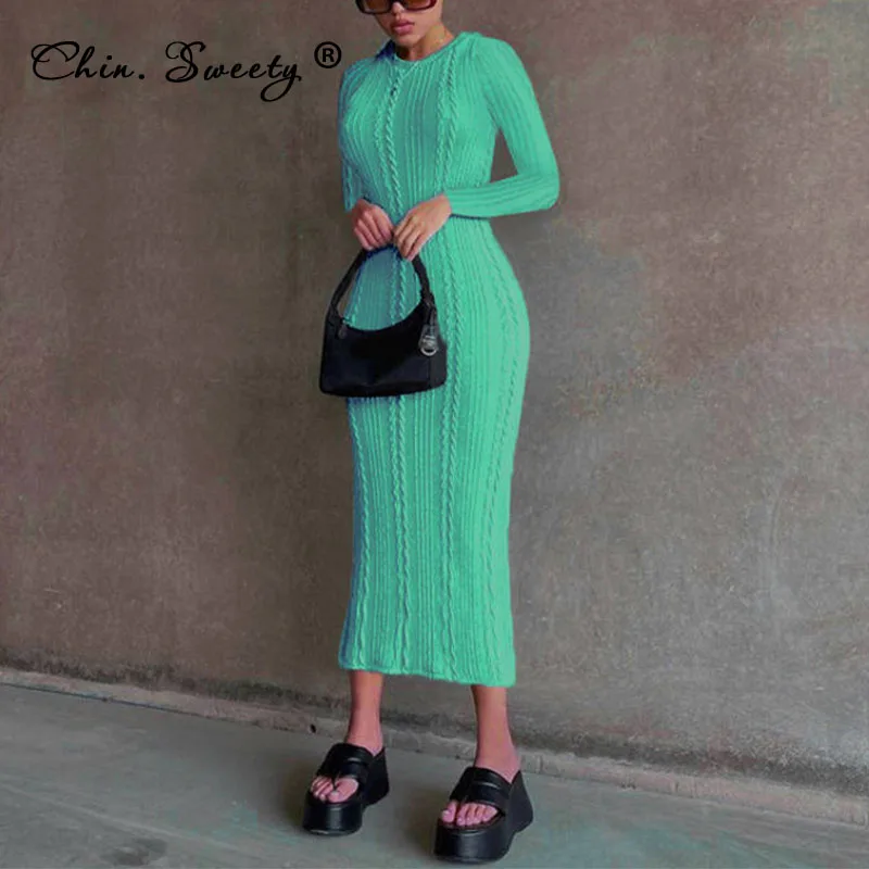 Женское трикотажное платье до щиколотки, с длинным рукавом и круглым вырезом, Осень-зима 2021
