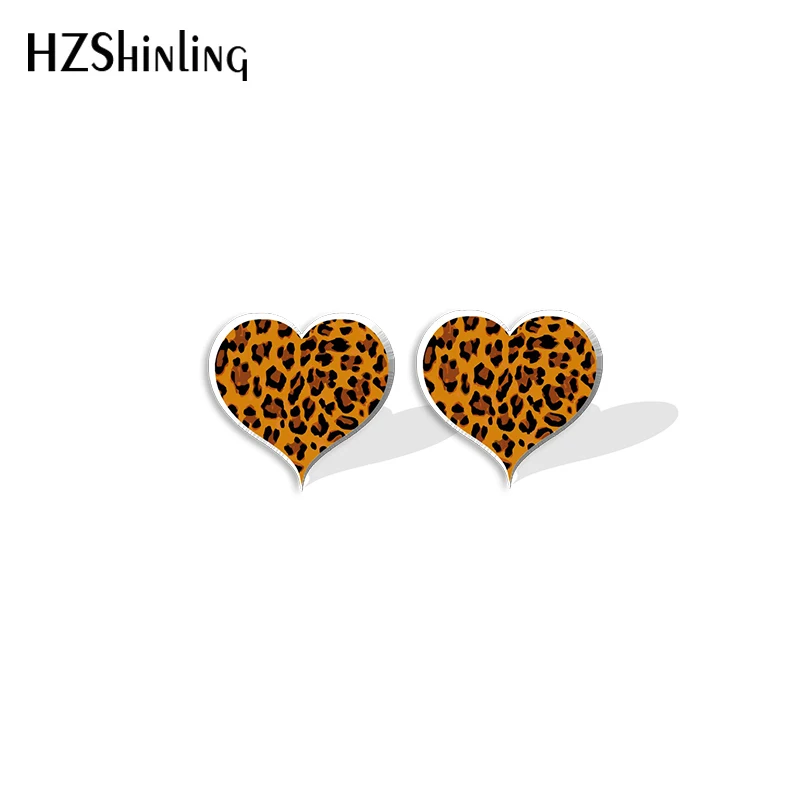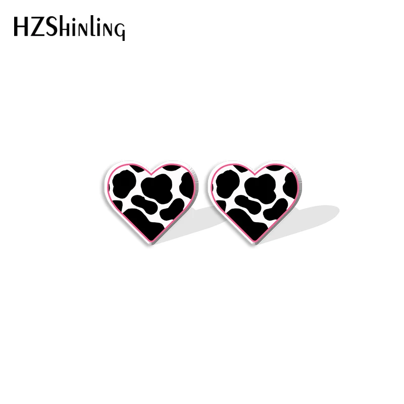 Новинка 2021, серьги-гвоздики в форме сердца с коровьим узором, Женская Блестящая эпоксидная смола