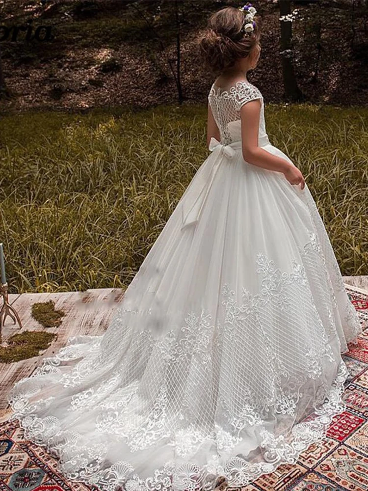 Белое платье с цветочным рисунком для девочек, свадебное платье со стразами для маленькой девочки, вечерние платья для Первого Святого Причастия