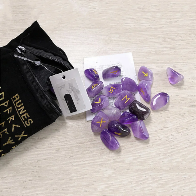 25 шт.компл. натуральный аметист, хрусталь, Руны Для удачи, камень,...