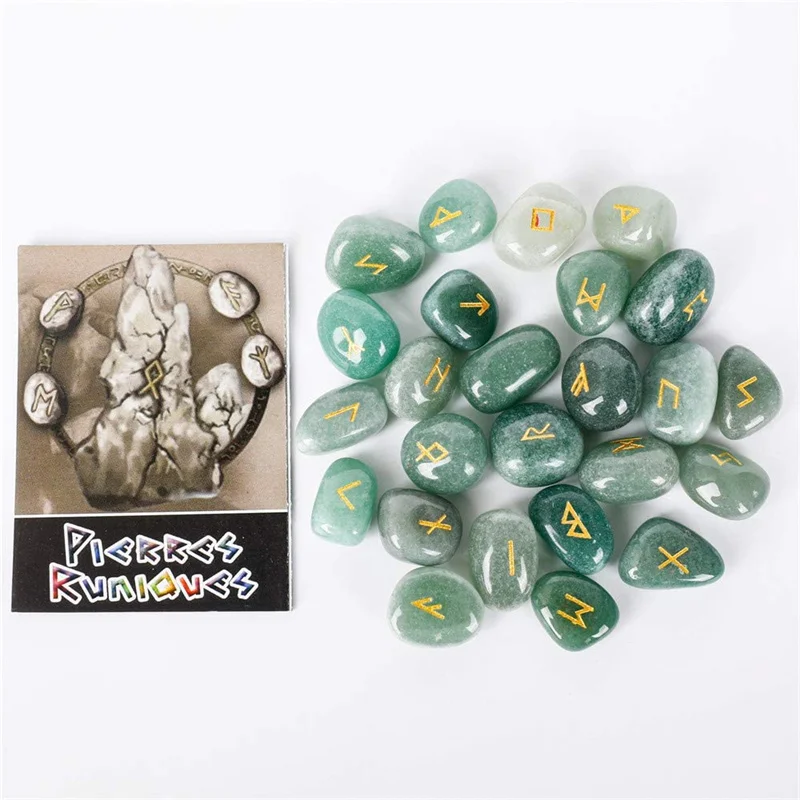25 шт.набор, камень-Руна, выгравированный лечебный кристалл, камень-Руна для чакры фэн-шуй, балансировка рейки, лечебный руничный камень