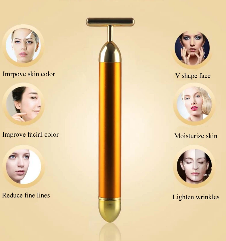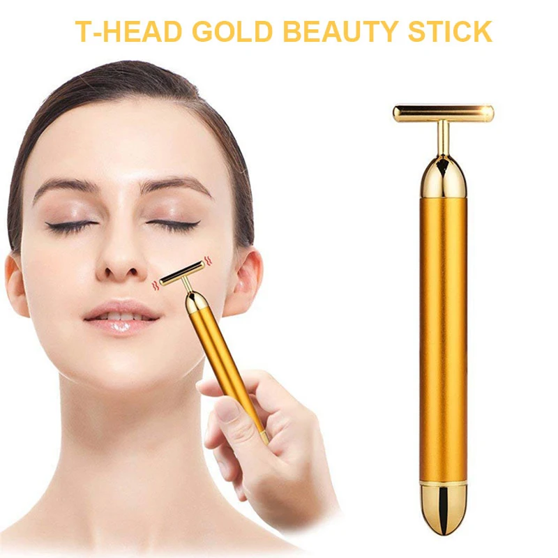 Энергетический укрепляющий роликовый массажер для лица, 24K золото, T-образная энергетическая балка для красоты, инструмент для лифтинга лица, товары для макияжа для женщин