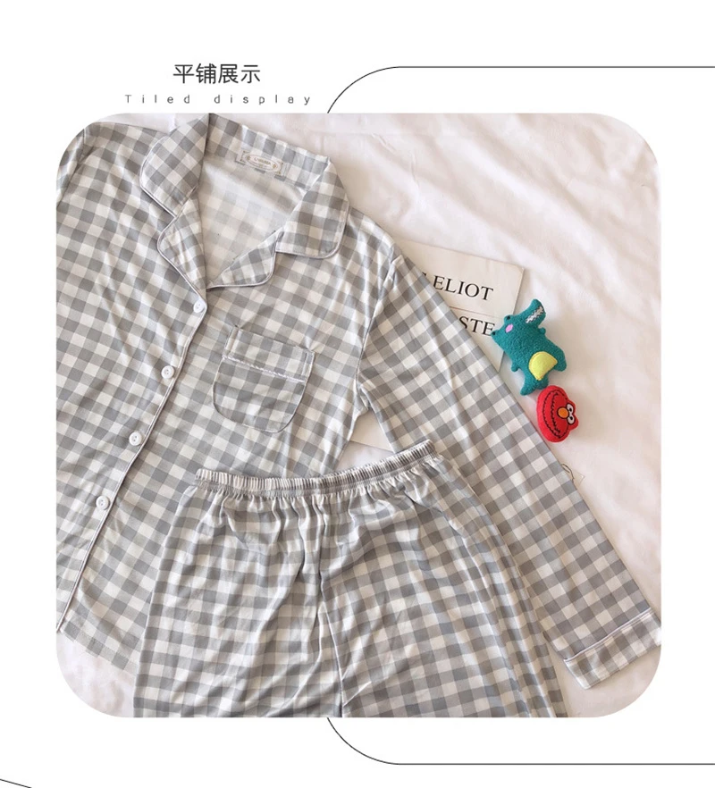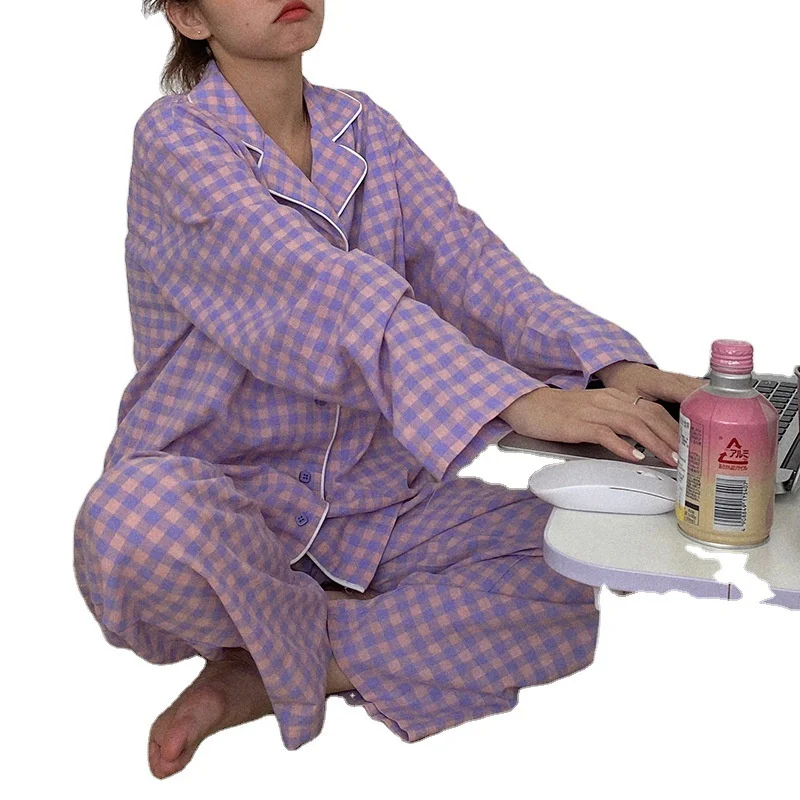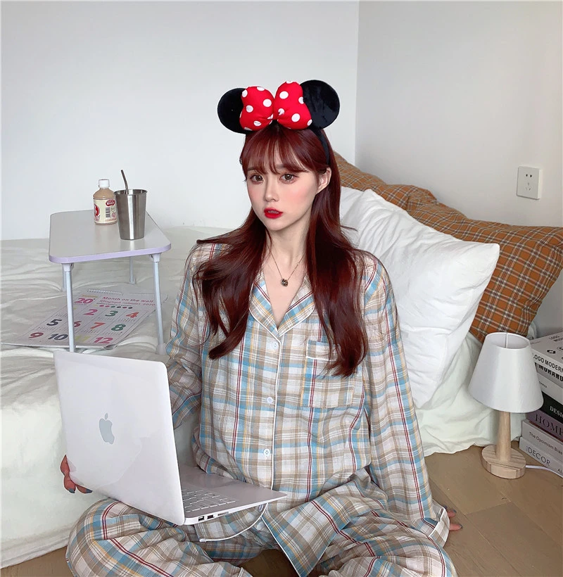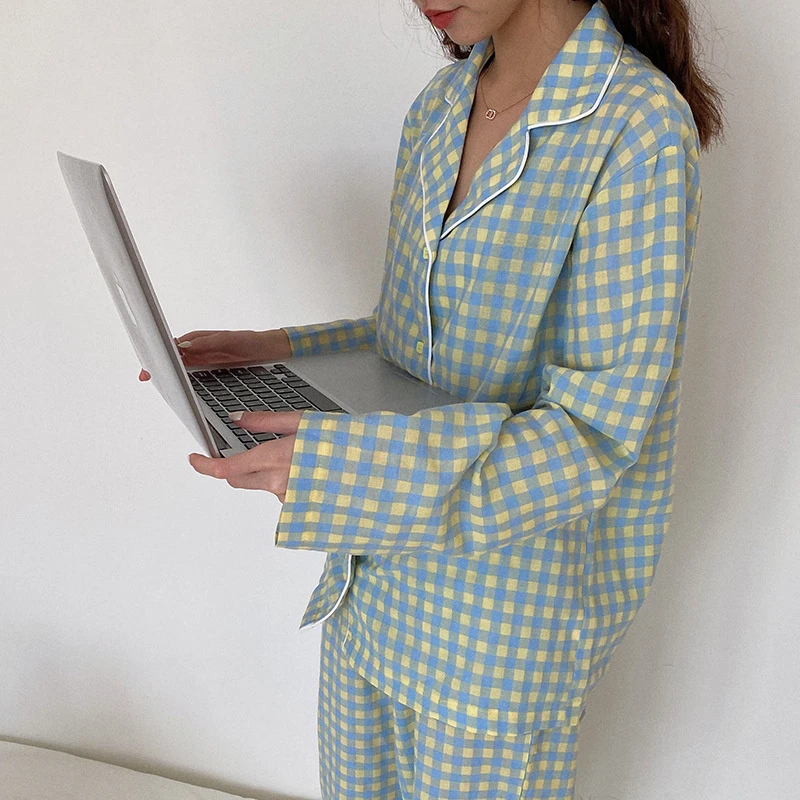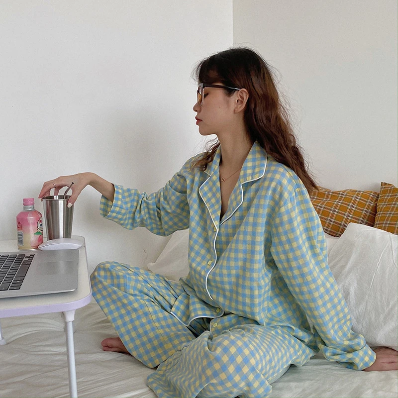 Пижамный комплект в клетку с принтом, Милая женская домашняя одежда, Кардиган с длинным рукавом, пижама, 2 шт., Студенческая одежда для сна, Новинка осени 2022