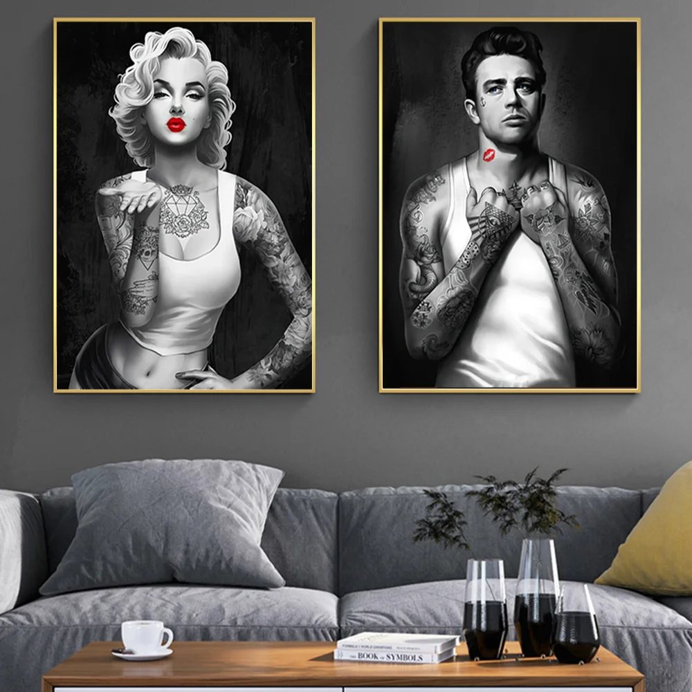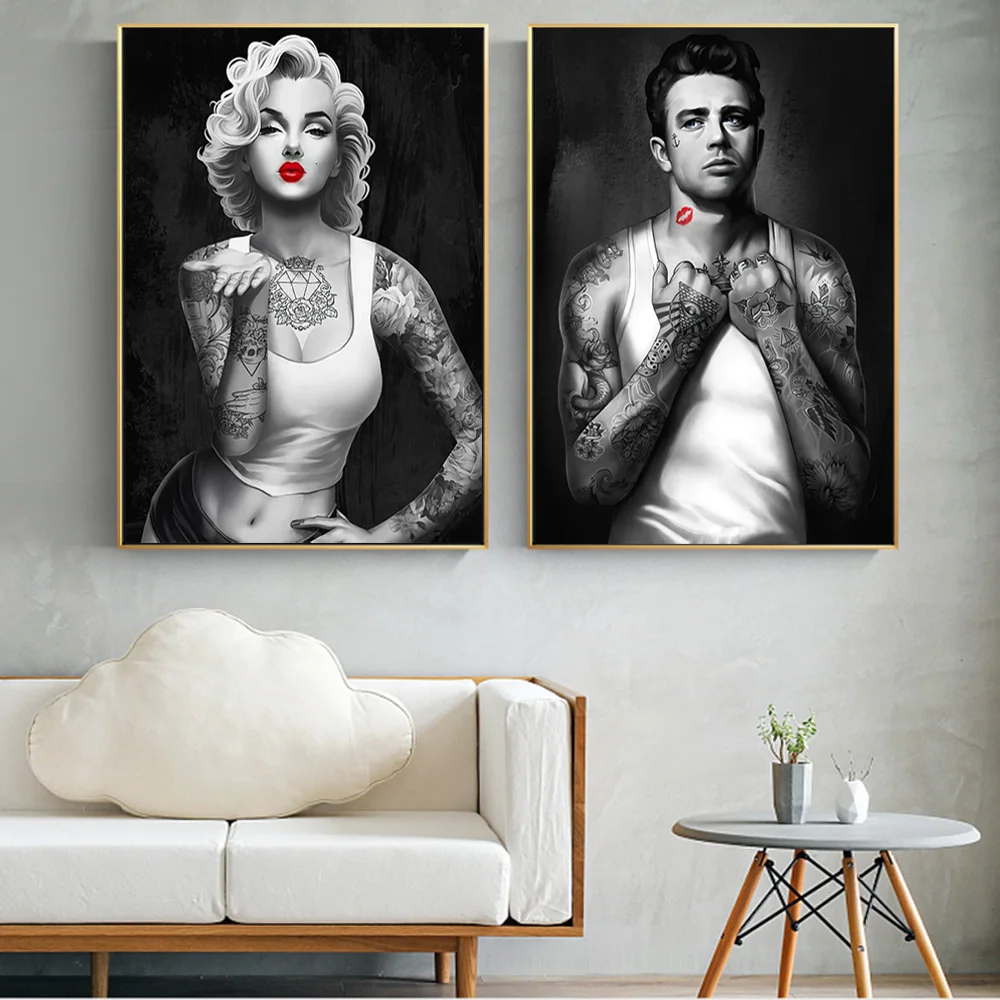 Рисунок на холсте красивый и красивый человек с татуировкой, плакат, картина на черно-белую стену, художественная декоративная роспись, тканевые картины