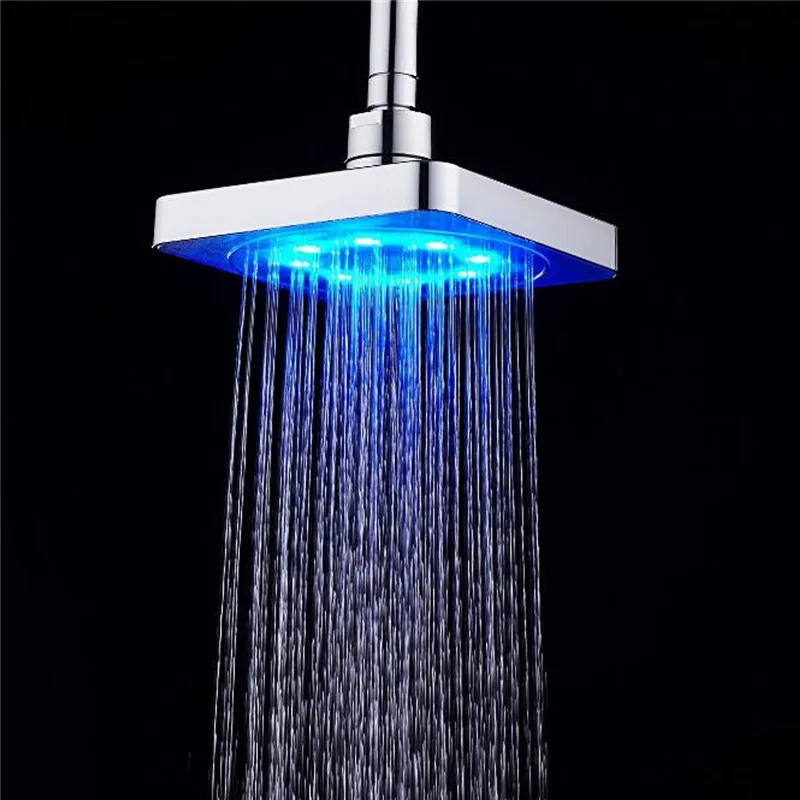 6-дюймовая светодиодсветильник квадратная насадка для душа с функцией дождя, 3 цвета