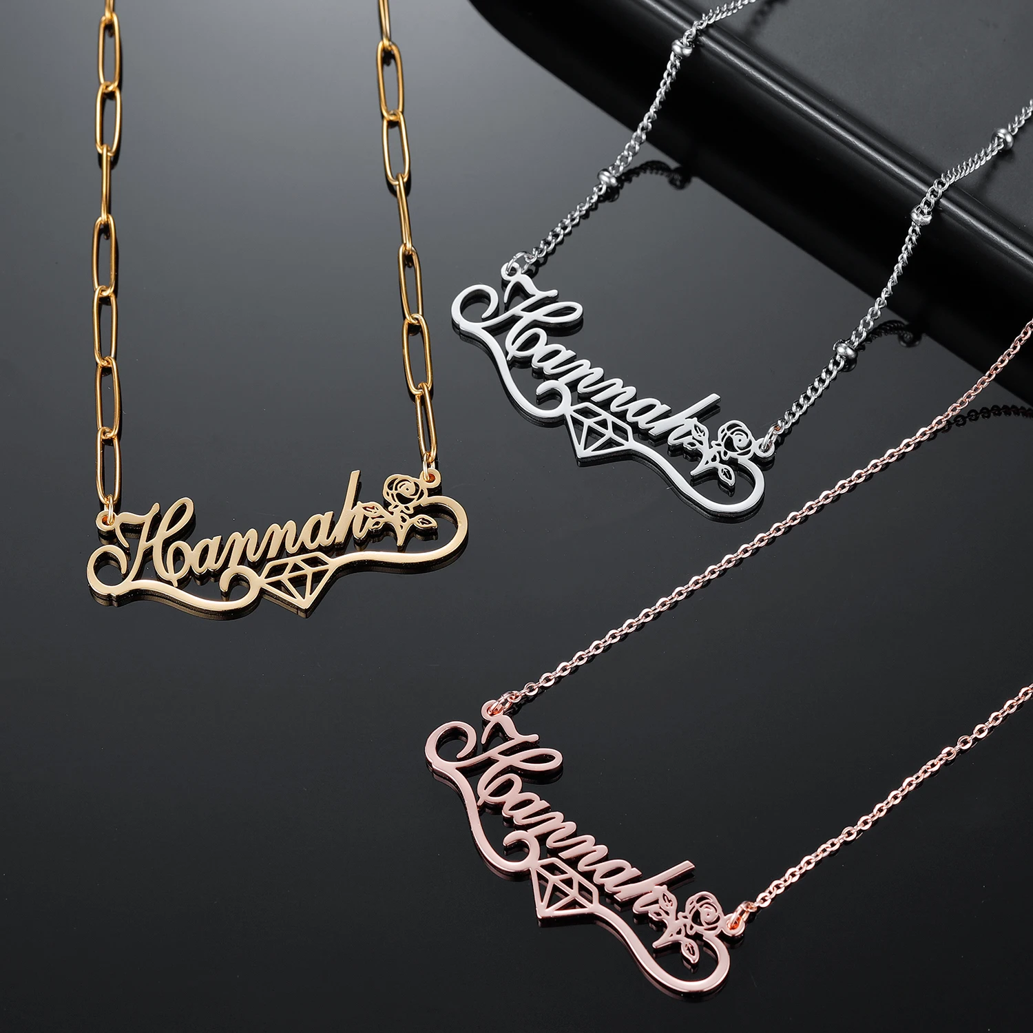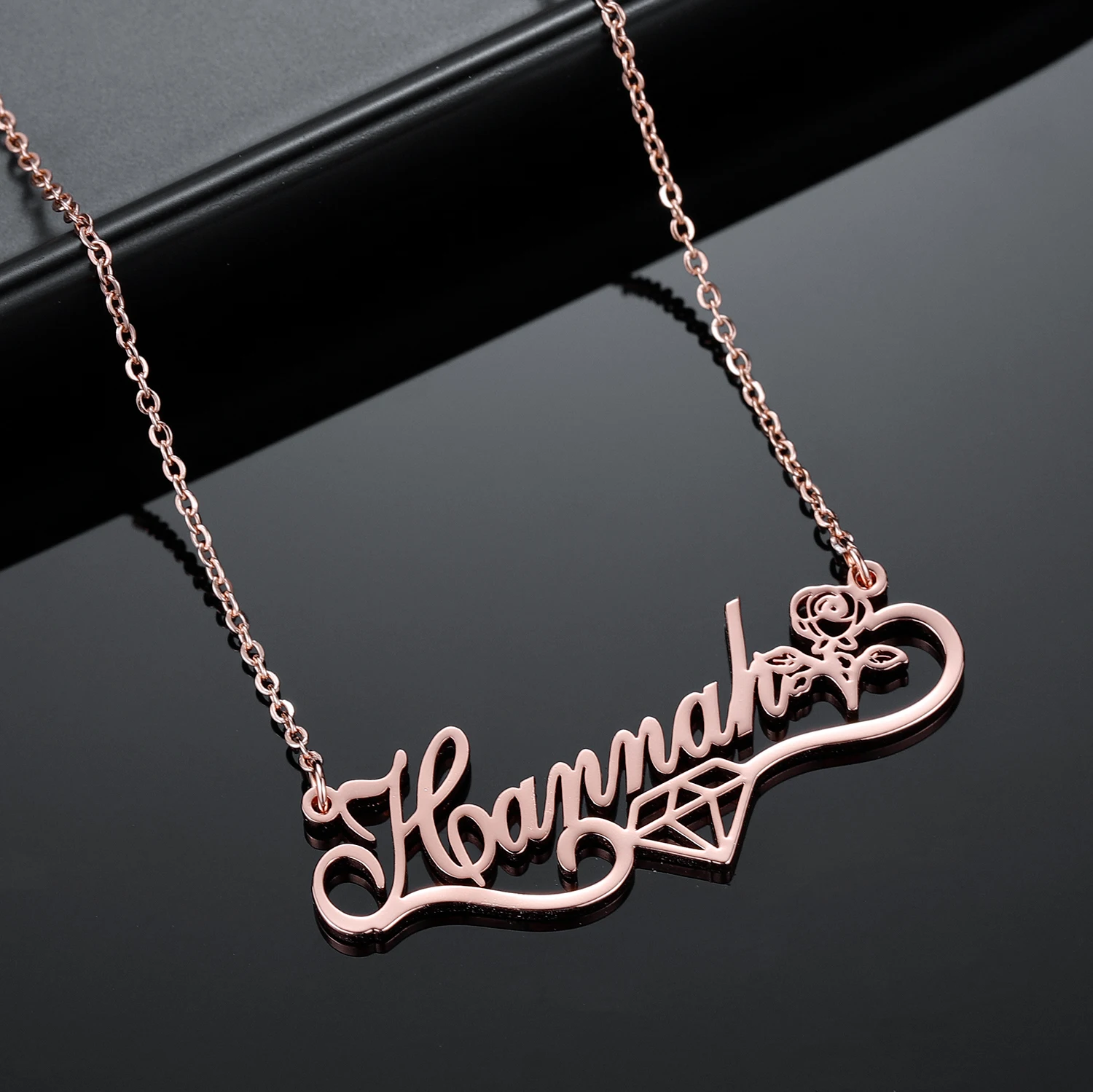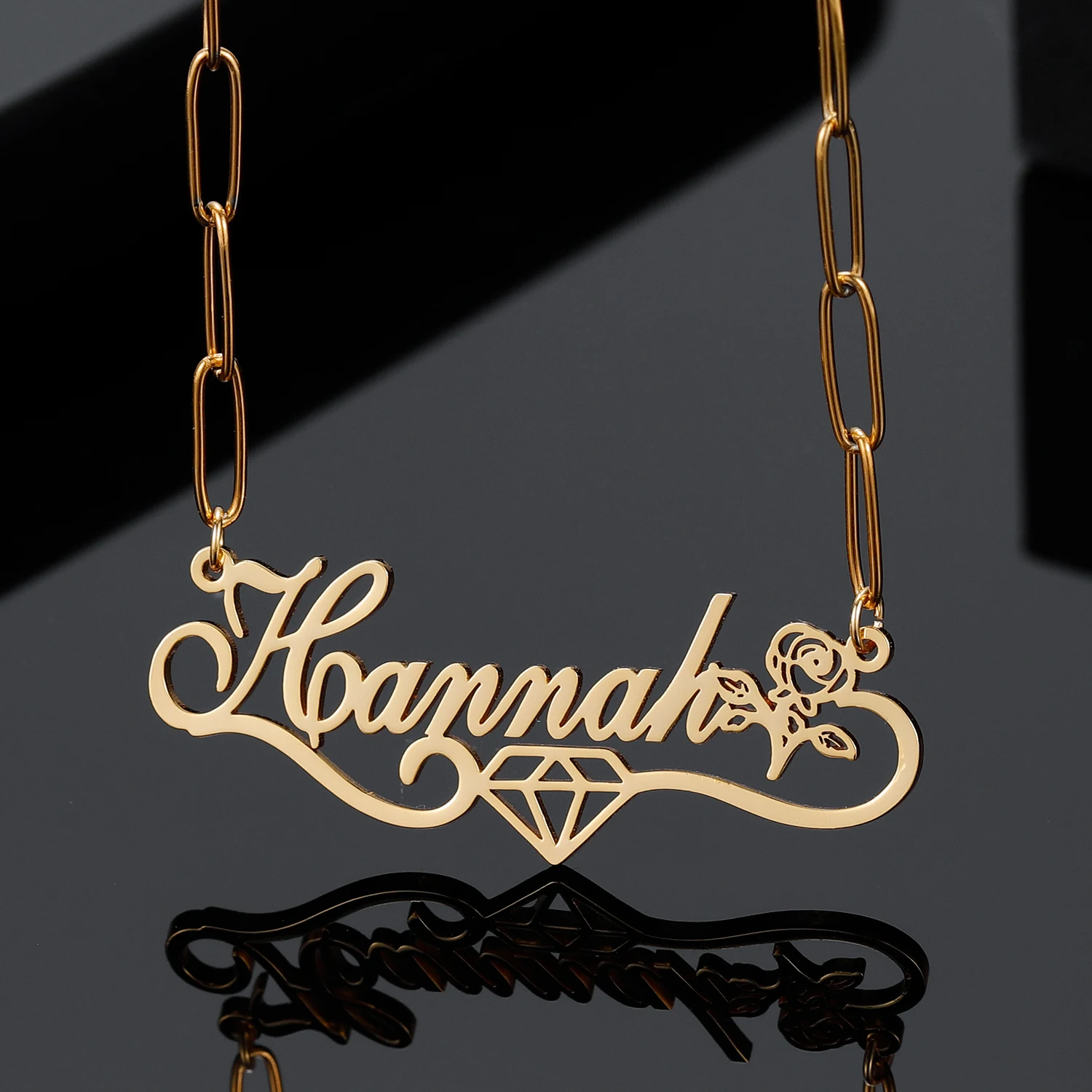 Ожерелье с именем на заказ с алмазным символом, персонализированная подвеска с именем цветка для женщин, золотая цепочка из нержавеющей стали, рождественский подарок