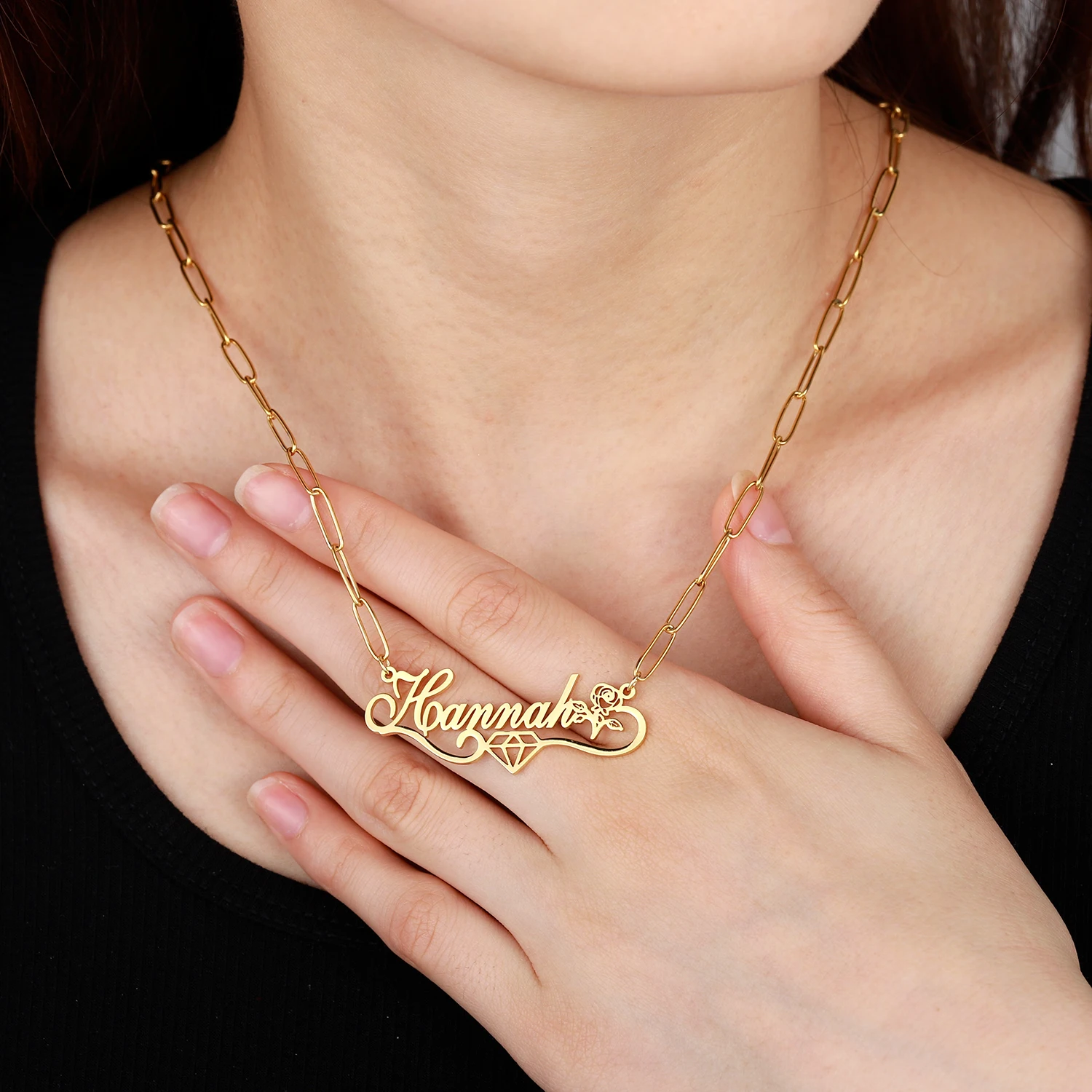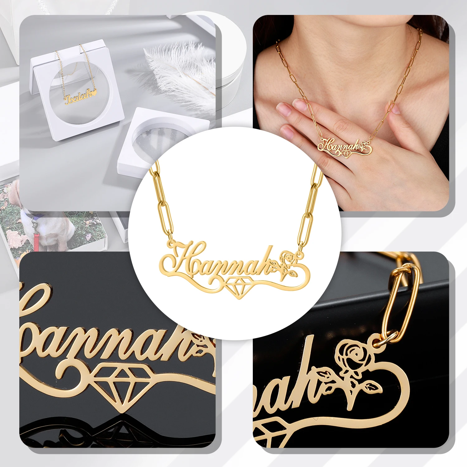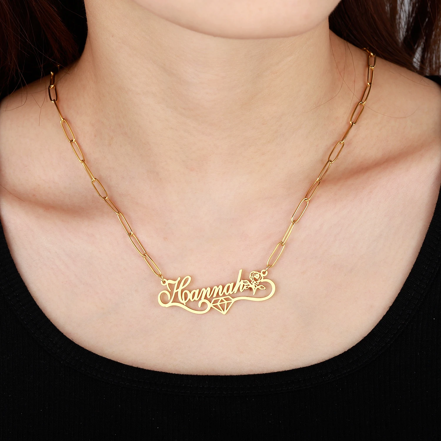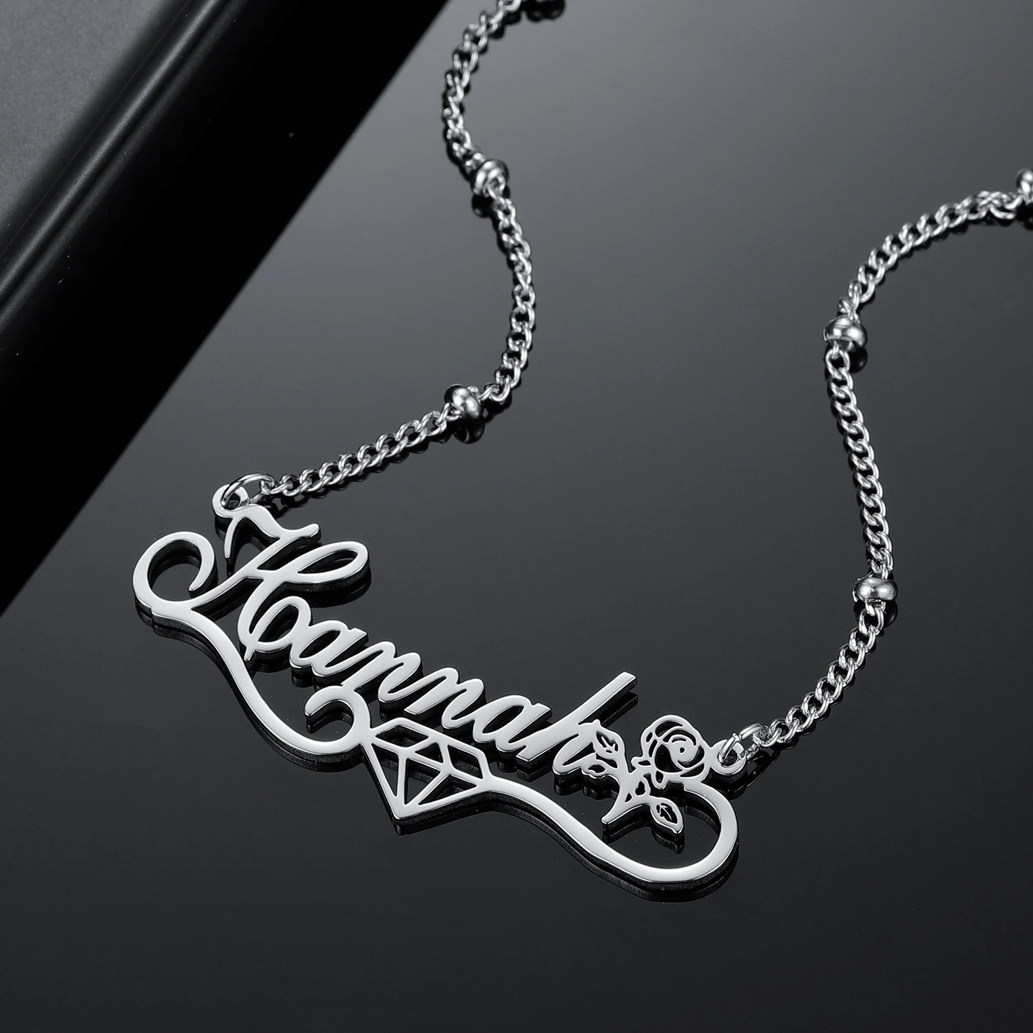 Ожерелье с именем на заказ с алмазным символом, персонализированная подвеска с именем цветка для женщин, золотая цепочка из нержавеющей стали, рождественский подарок
