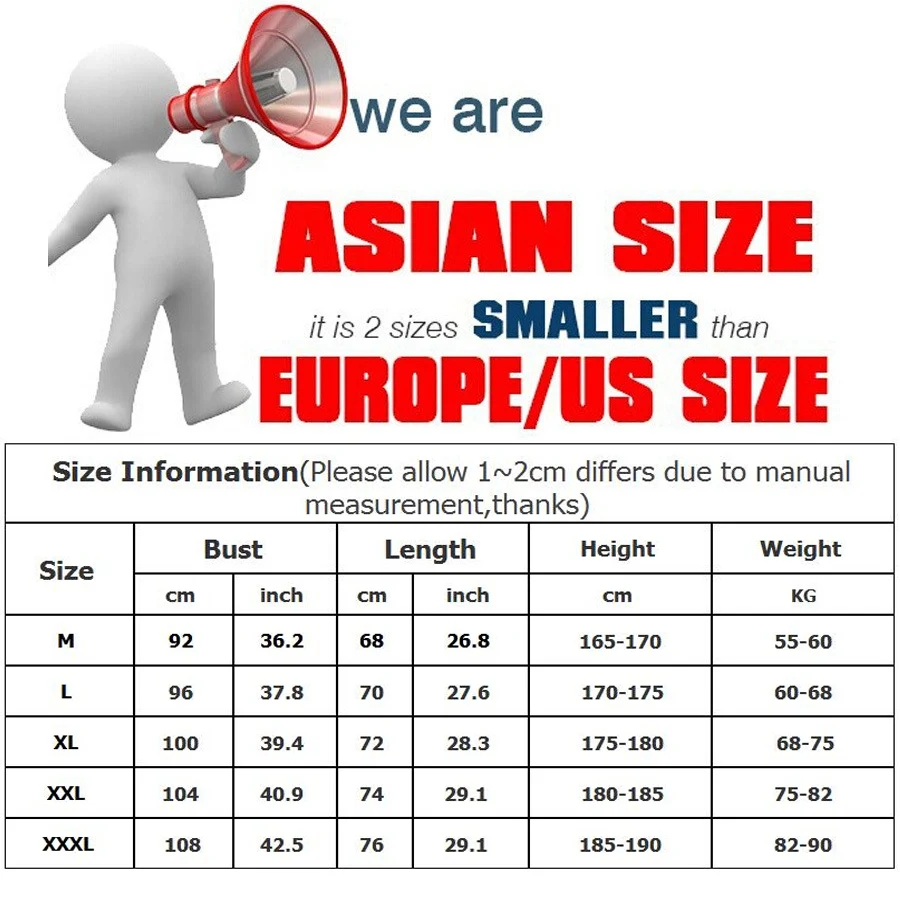 Asian Size !!!M/L/XL/XXL(EU/US S=Asian L)