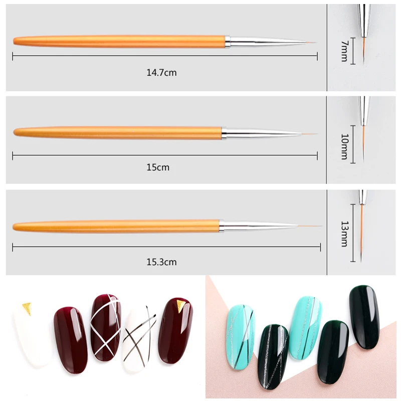 3 шт.компл. золотая ручка для дизайна ногтей Живопись из линий, про...