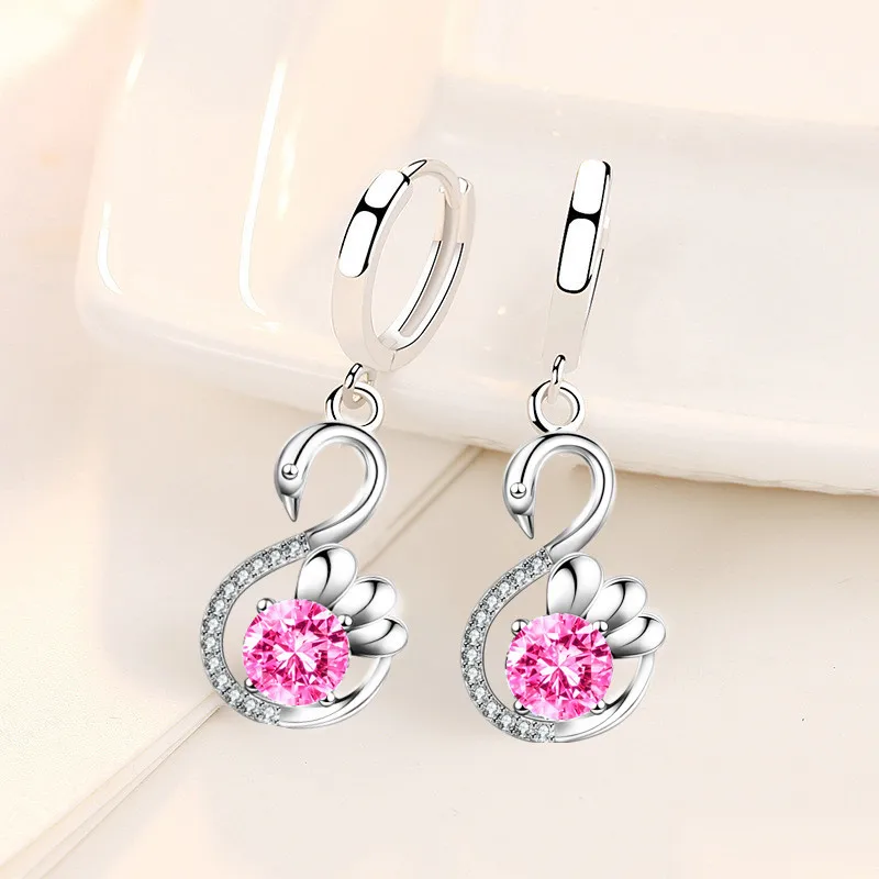 Женские серьги из серебра 925 пробы с голубым и розовым кристаллом