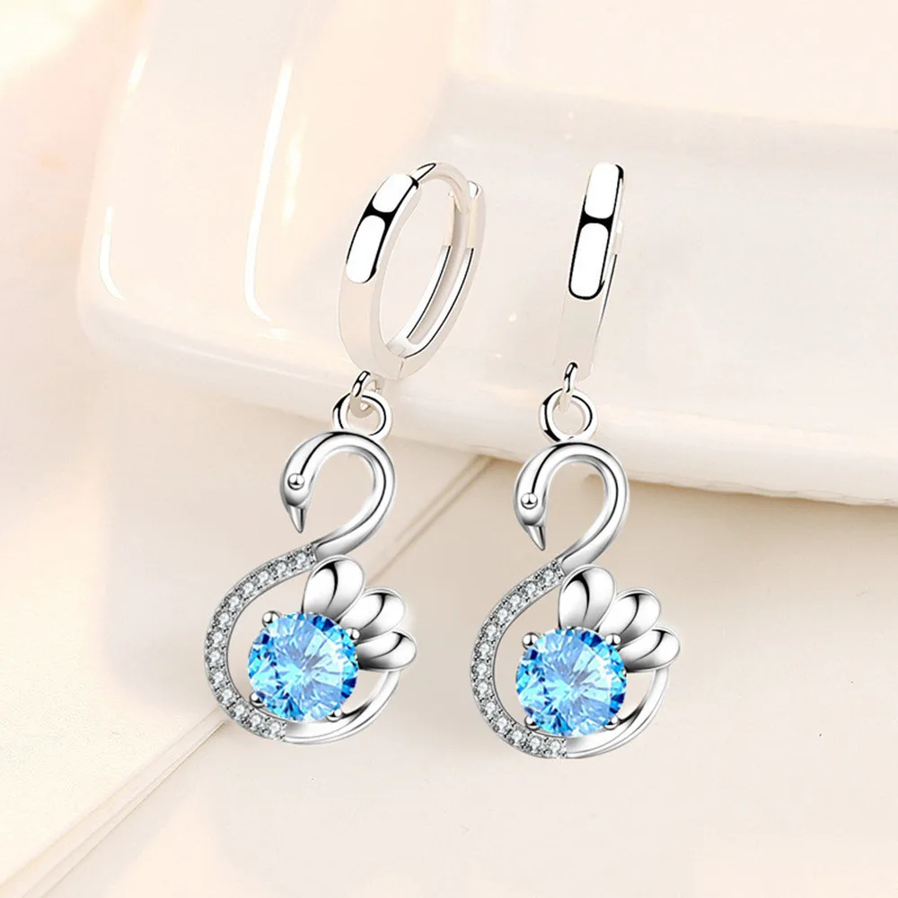 Серьги женские из серебра 925 пробы, с голубыми кристаллами и цирко...