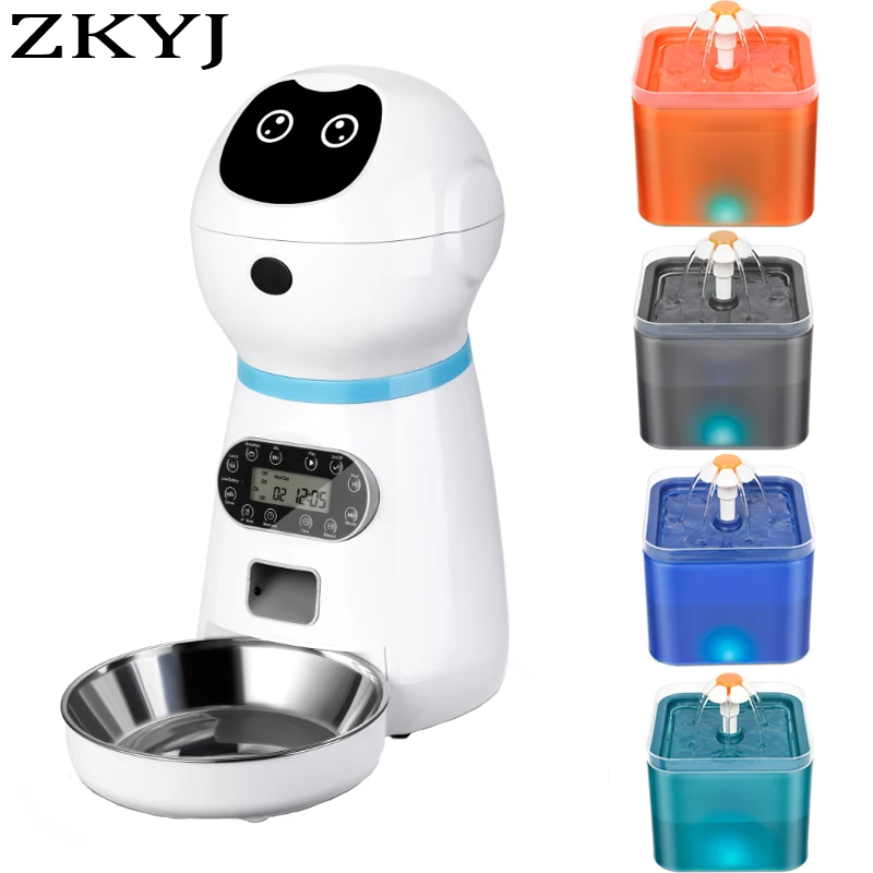 Автоматический диспенсер для пищевых продуктов, автоматический питьевой фонтан, запись голоса, ЖК-экран, чаши для сухой пищи