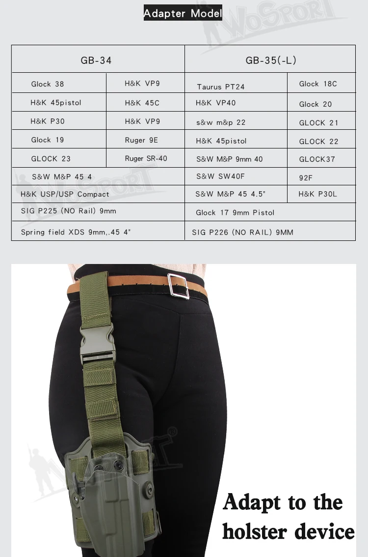 Адаптер кобуры для тактического пистолета GLOCK 17 18 19 20 21 22 3...