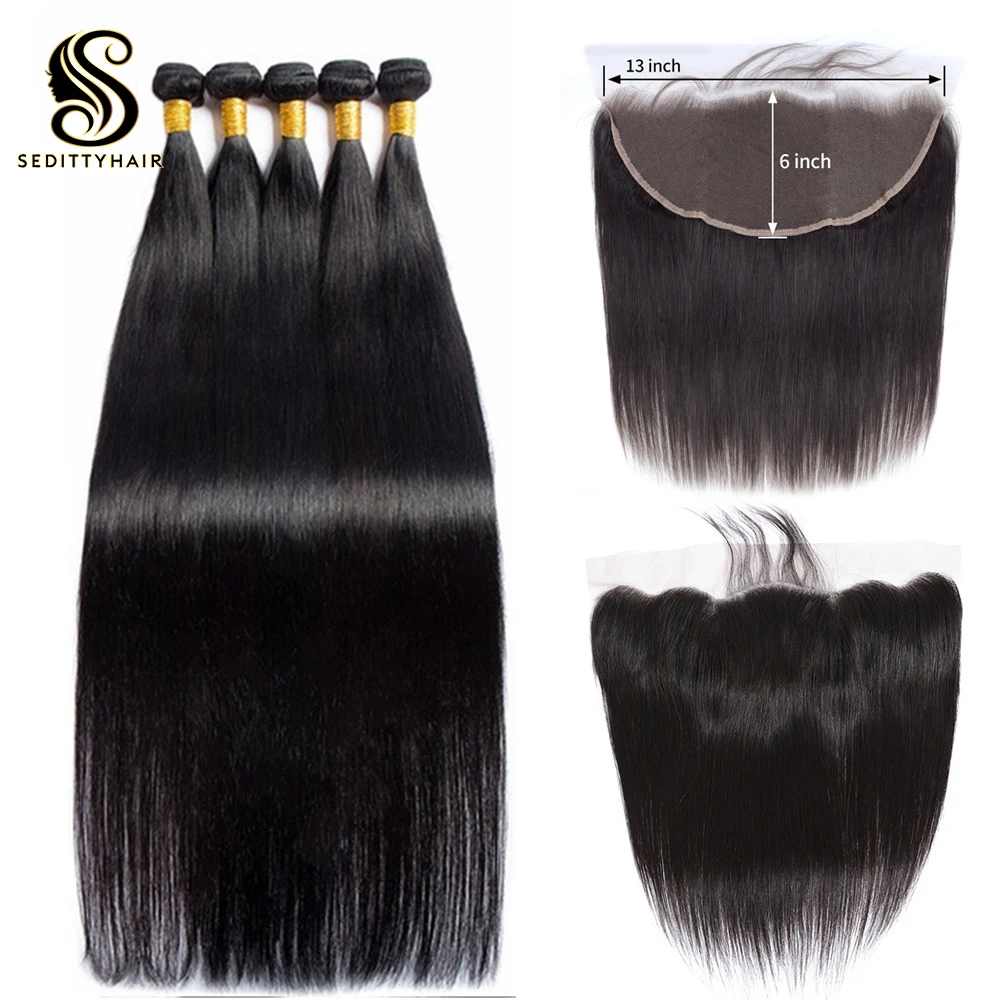 Seditty hair 28, 30 дюймов, бразильские прямые искусственные волосы с фронтальной сеткой 13x6, фронтальная сетка с 3 4 пучками, волосы Remy