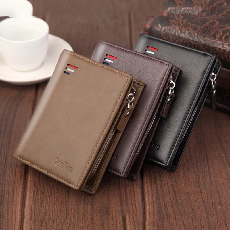 Мужской кошелек, новинка 2022, короткий бумажник, винтажный карман для монет, мужской кожаный кошелек на молнии, многофункциональный кошелек, держатель для купюр