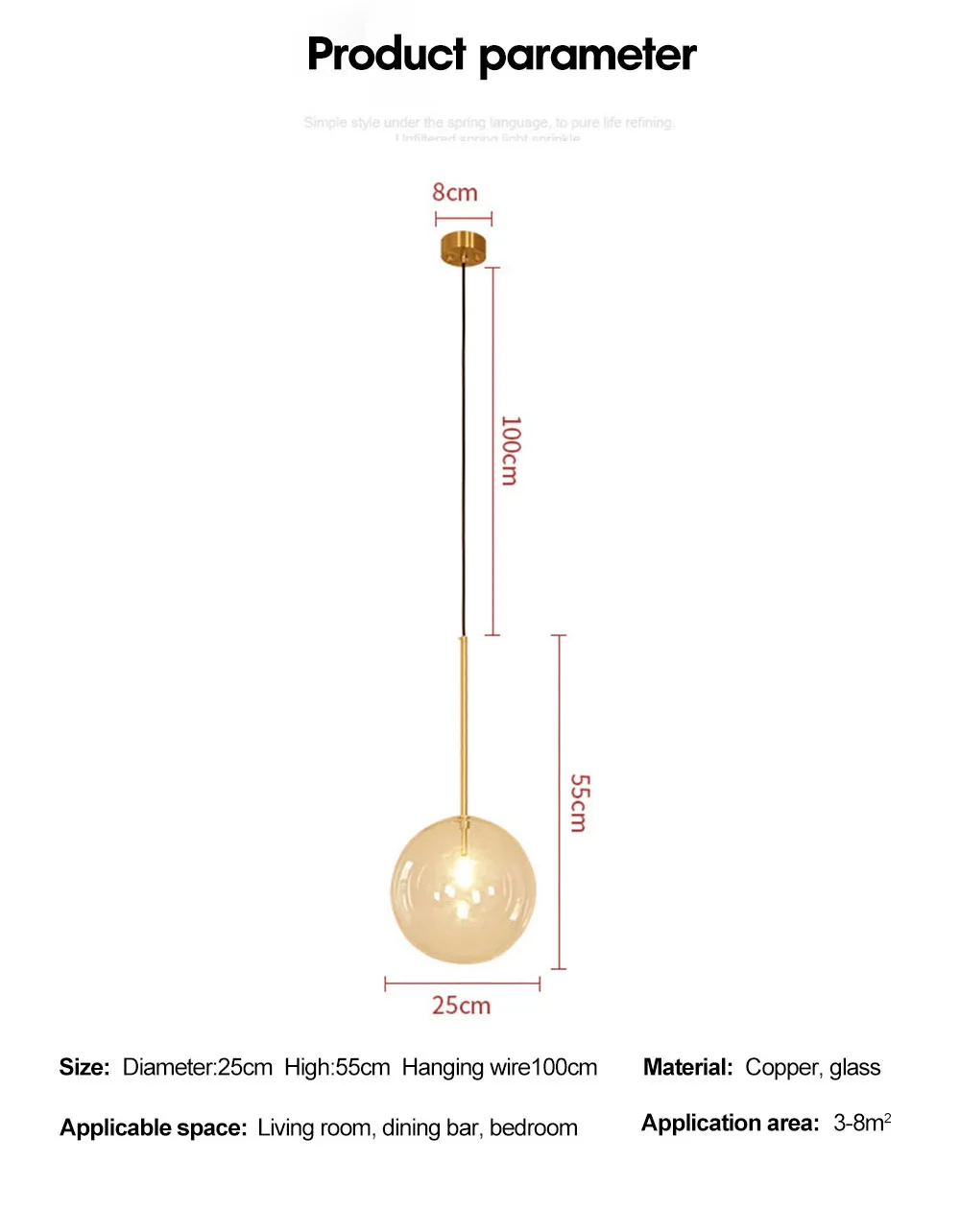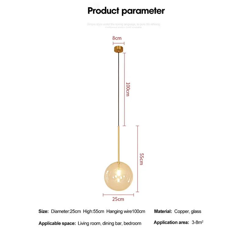 Стиль: Современный и простойТип люстры: стеклянная люстраСветильник источник света: светодиодный светильникМатериал корпуса лампы: стеклоРегулируемая высота: 113 см (длина подвесного провода)Размер абажура: 150 /180/ 200 /250 (мм)Напряжение: 220 ВПрименение: гостиная/кухня/отель/кабинет/ванная комната/офис/столовая комната
