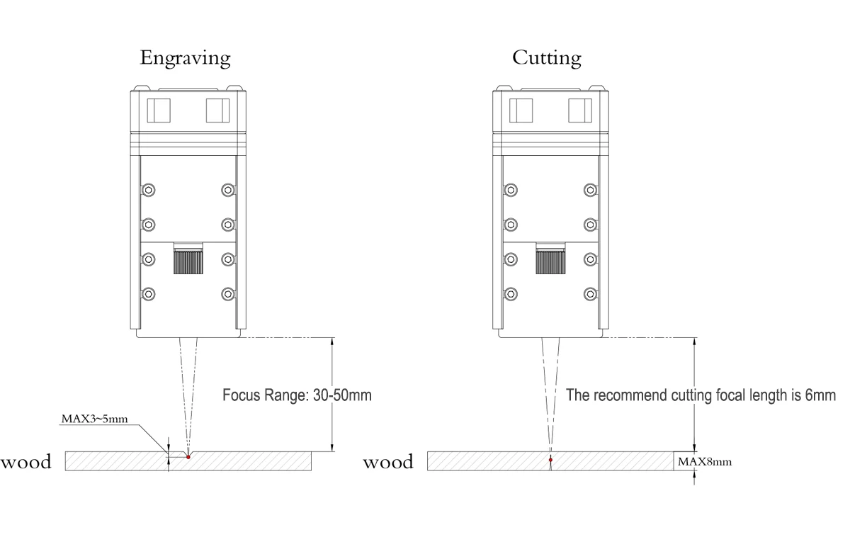 -Оптическая выходная мощность 10 Вт, фанера 4 мм от 1 pass (скорость 200), черная акриловая доска 3 мм от 1 pass.(регулировка фокуса путем регулировки высоты модуля)