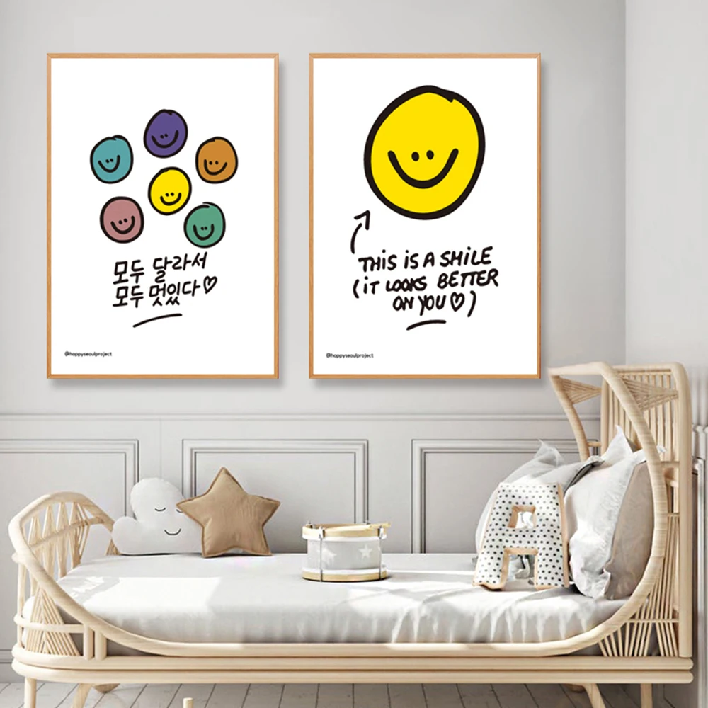 Современная простая желтая Картина на холсте с изображением улыбки, Настенная картина, украшение для дома, картины для гостиной, детской комнаты, Декор