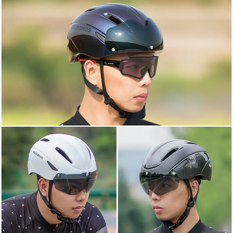 Велосипедный шлем ROCKBROS, дышащий со встроенной формой из пенополистирола, для мужчин и женщин, с очками, аксессуары для горных и шоссейных велосипедов