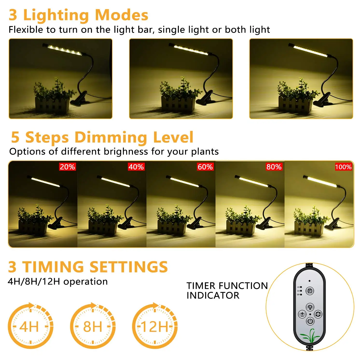 USB завода светать светильник солнечный светильник полный спектр белого светильник ing с регулируемым углом наклона Настольный зажим для роста растений лампы для комнатных растений 5 уровней яркости 4/8/12H таймер
