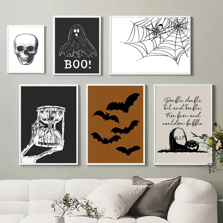 Хэллоуин скелет призрак тыква летучие мыши кошка настенная живопись холст скандинавские плакаты и принты настенные картины для декора гостиной