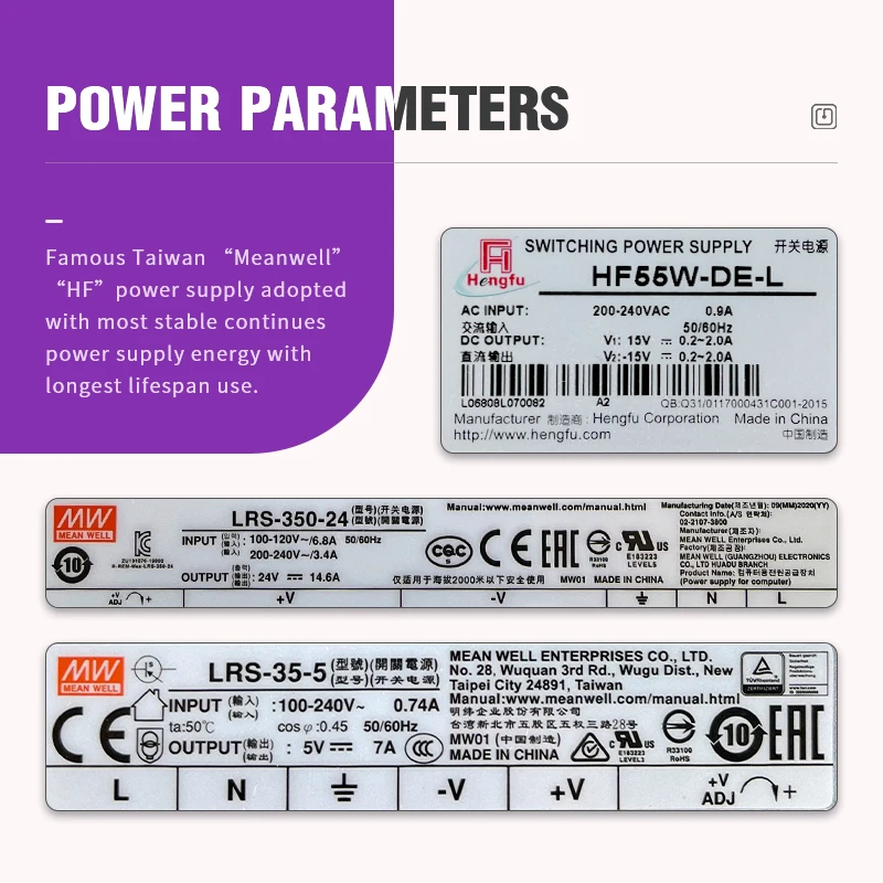 Известный тайваньский источник питания «Meanwell» «HF» с наиболее стабильным непрерывным источником энергии с длительным сроком службы.