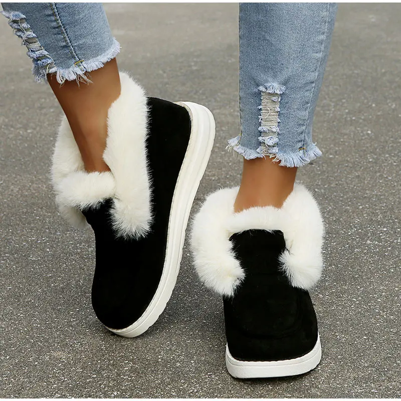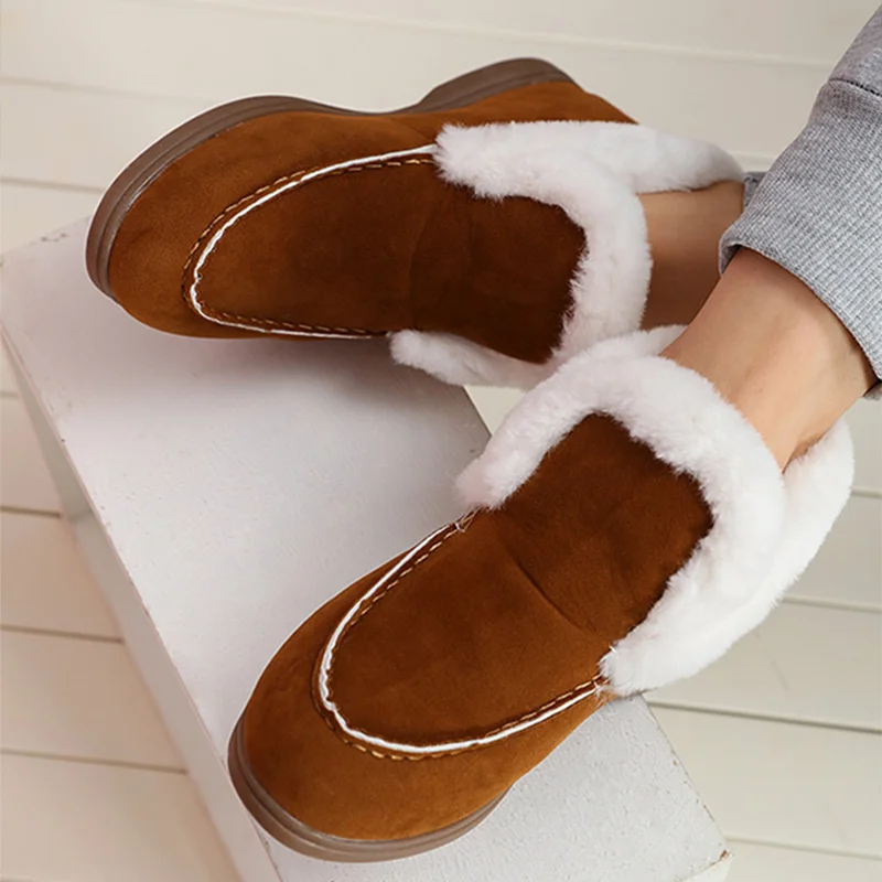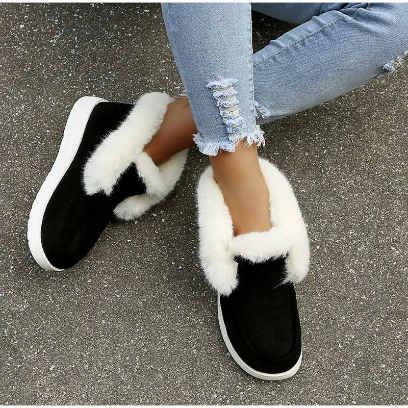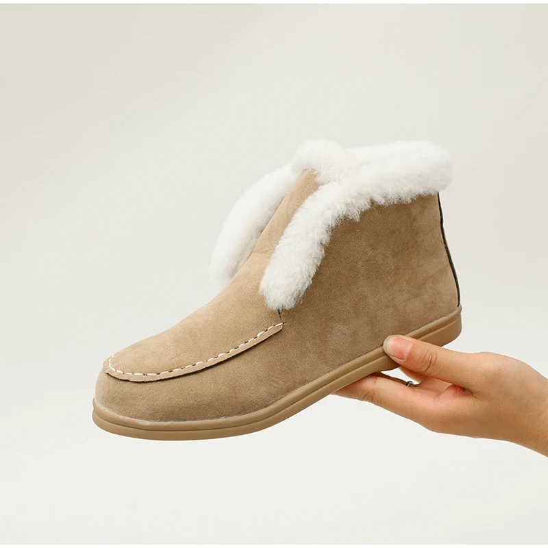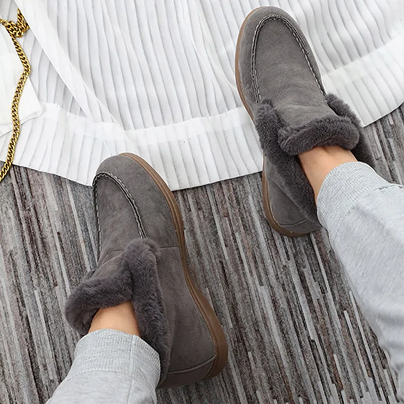 Ботинки женские зимние из замши и кожи, с Плюшевым Мехом, без застежки, 2021
