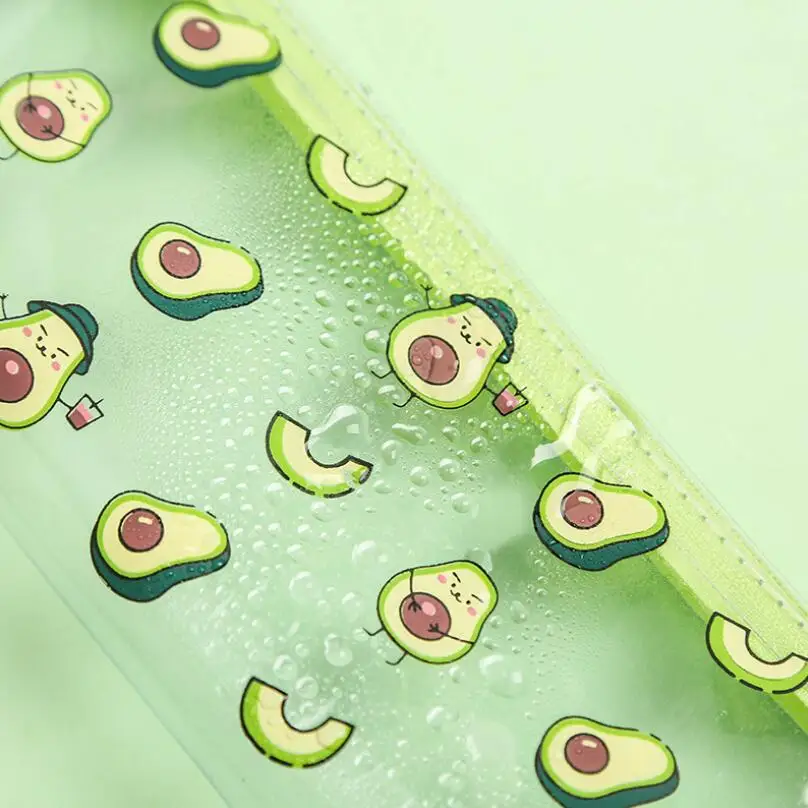 Пенал для карандашей, ПВХ, прозрачная канцелярская, с рисунком авокадо