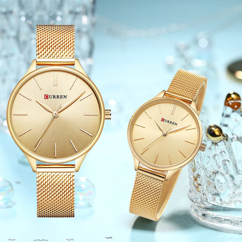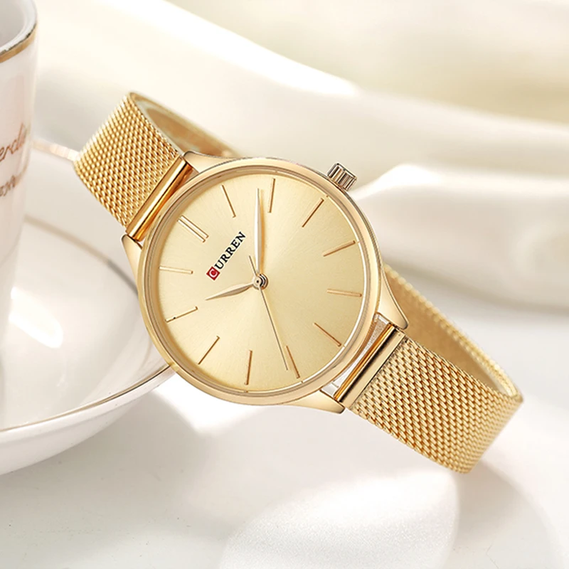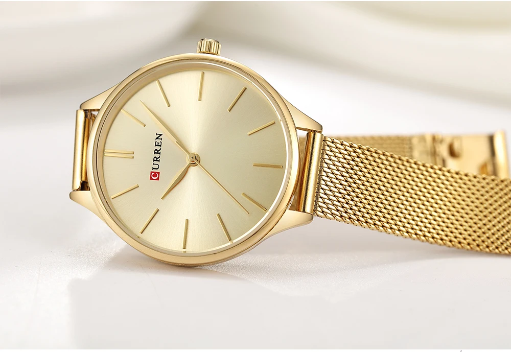 CURREN Женская мода водонепроницаемые женские кварцевые часы браслет набор циферблат простые золотые Роскошные наручные часы