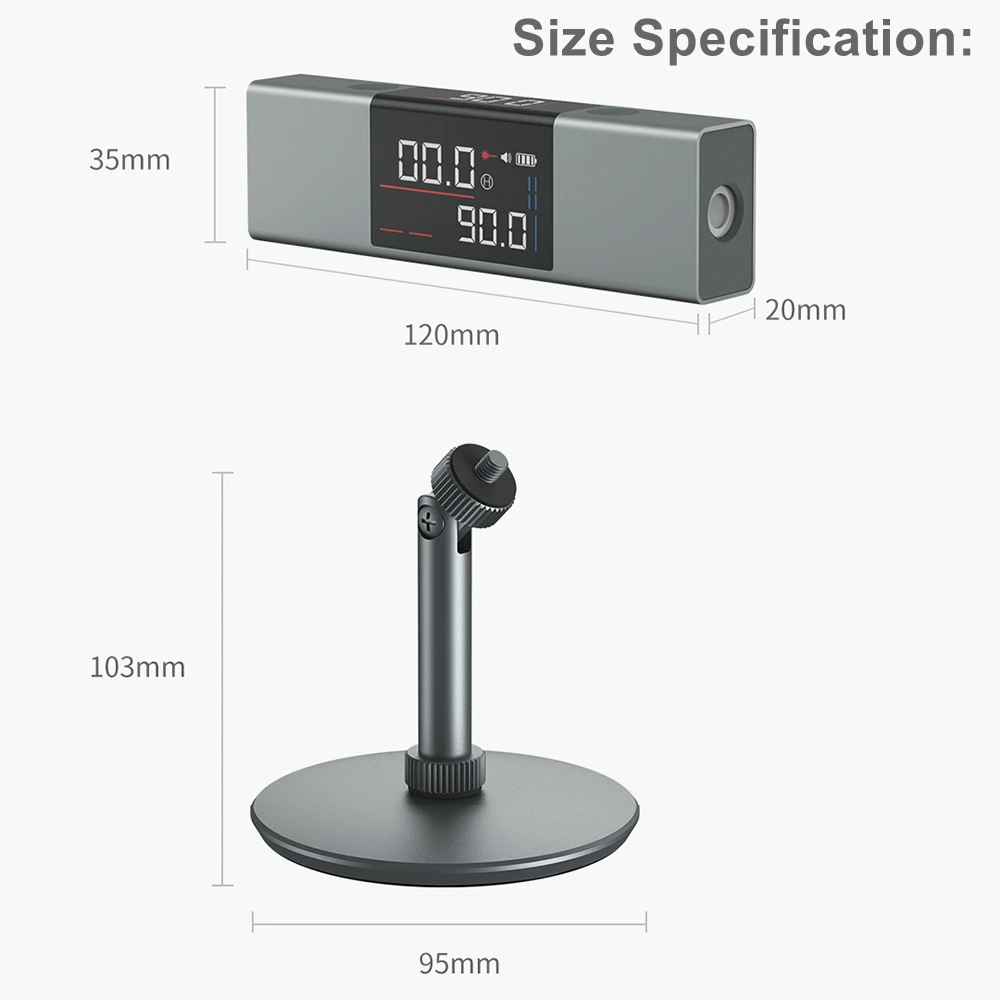 -В режиме реального времени угол лазерной проекции линии два в одном-Высокая точность-Двухсторонний СВЕТОДИОДНЫЙ экран-Матовый алюминиевый корпус-± 0,5 градусов измерение-Аккумулятор для быстрой зарядки типа C-95 г 20 мм, портативный мини-С подставкой на 360 градусов (добавить держатель)