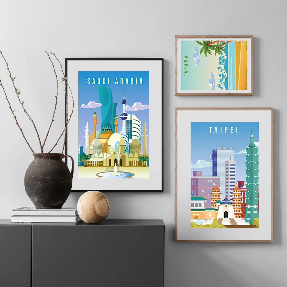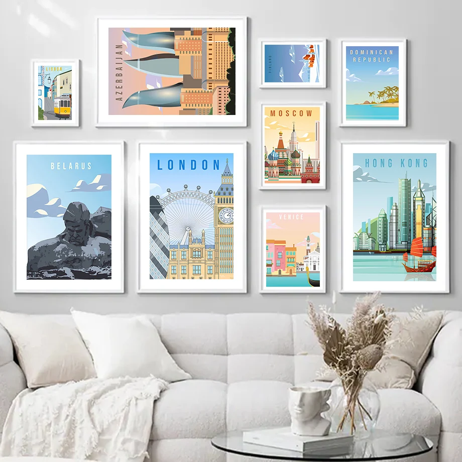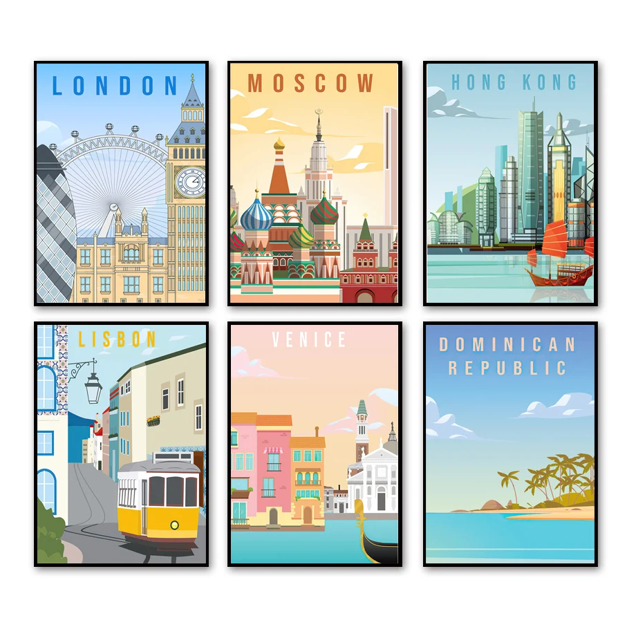 Скандинавская иллюстрация, Картина на холсте с изображением города,...