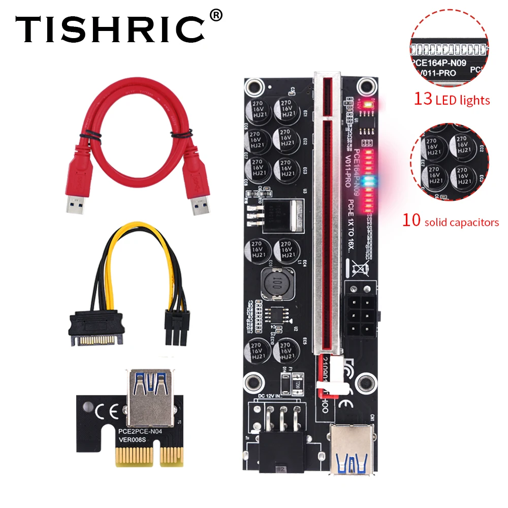 50 шт. TISHRIC PCIE Riser V011 Pro PCI-E PCI E Express Card GPU 1X к X16 6pin адаптер кабель для майнинга для видеокарты супер модель