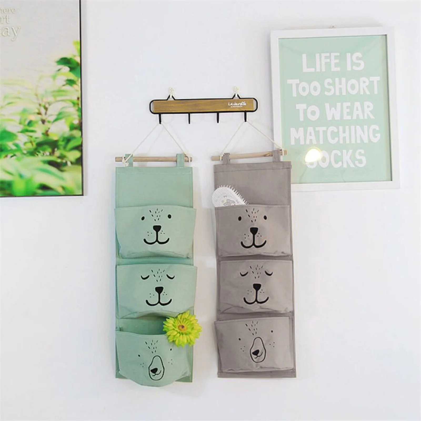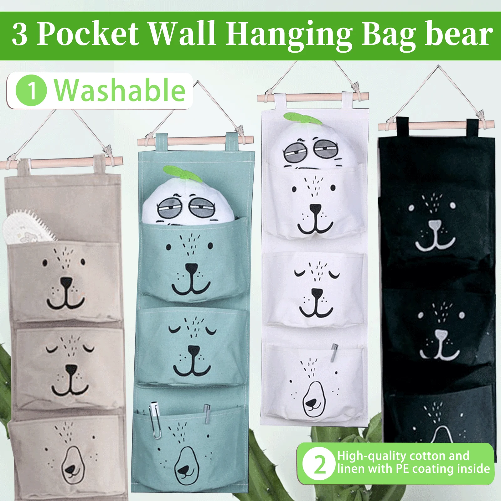 Bew настенная подвесная сумка с медведем, 3 карманных Вешалки для ванной, детская подвесная сумка, 3 карманных складных сумки для хранения, сумка для детской комнаты, домашний декор