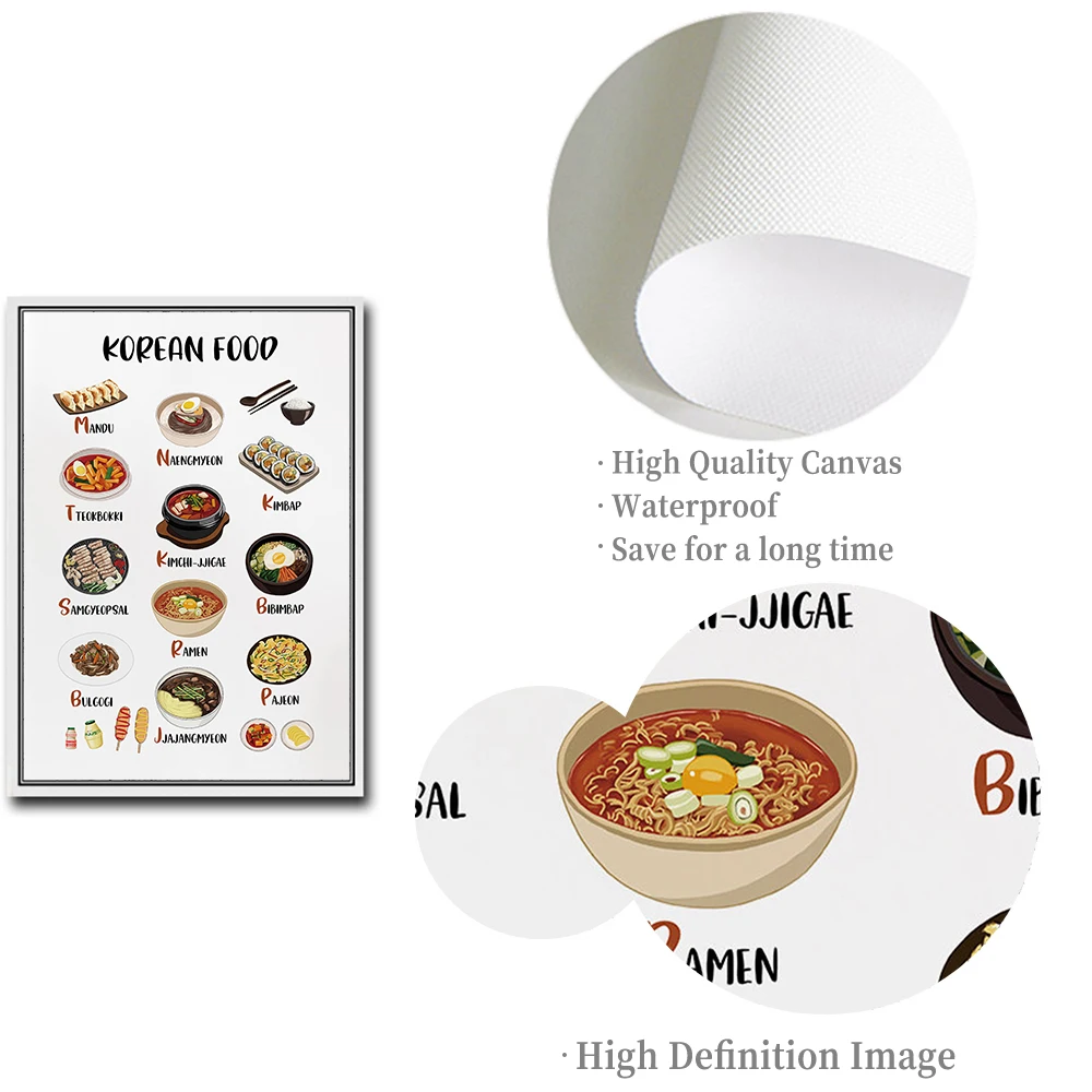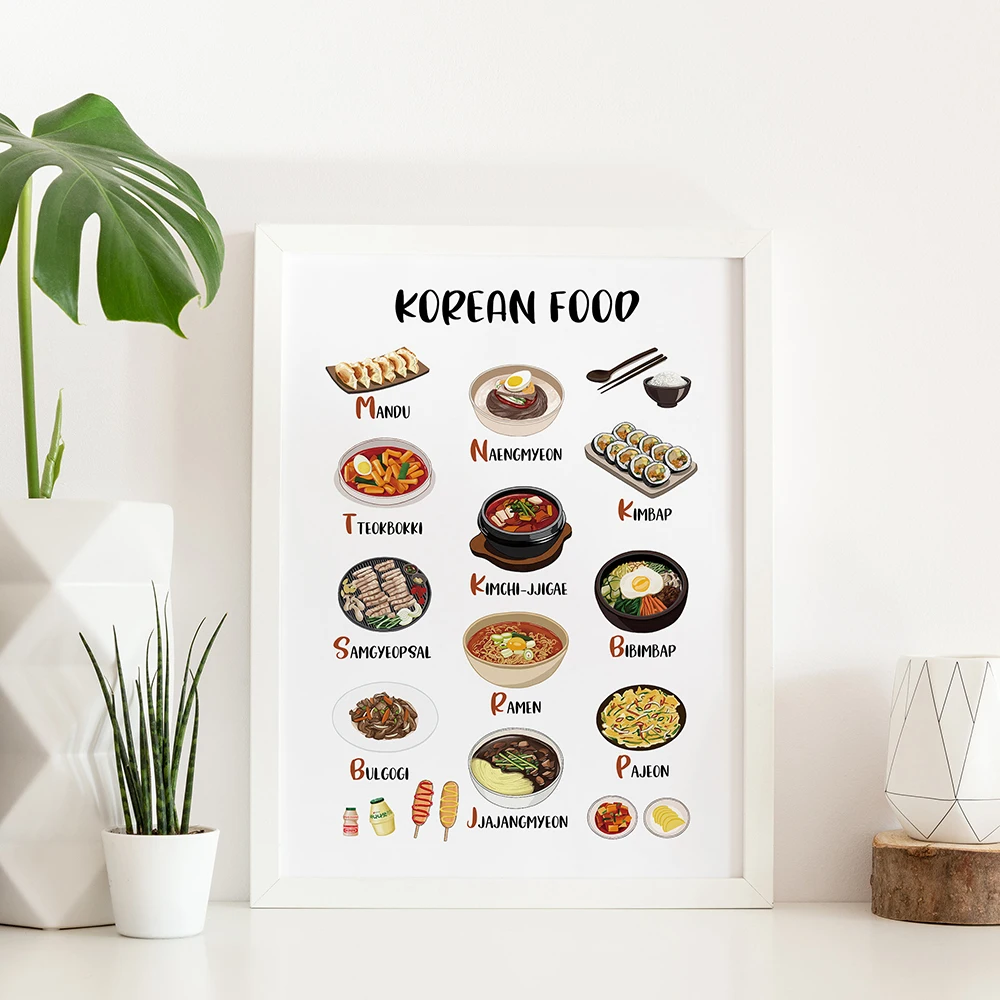Современный мультяшный постер с изображением корейской еды, ресторана, манду, рамен, печать на холсте, картина кимбап, настенное искусство, картины для кухни, домашний декор