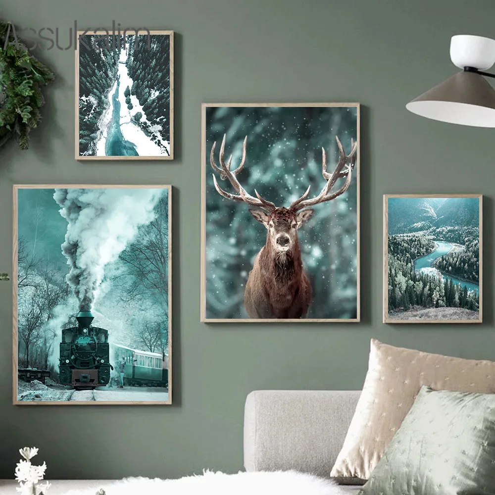 Зимний лес Снежный пейзаж настенный плакат плакаты с оленем пейзаж ...
