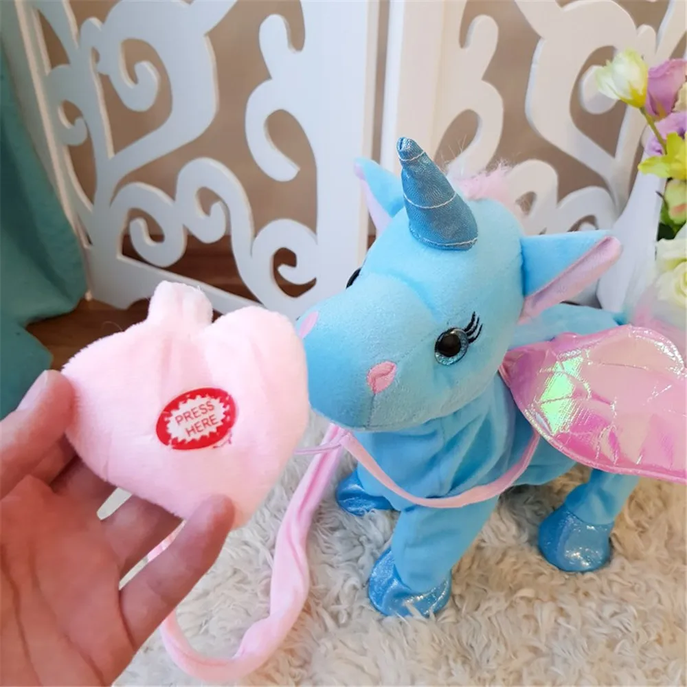 Забавные игрушки электрическая ходячая плюшевая игрушка единорог набивное животное лошадь Музыкальная кукла для детей рождественские подарки
