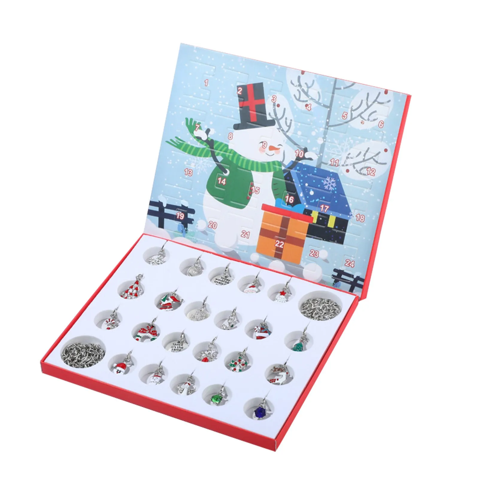 24 дня обратного отсчета для 1 рождественская Подарочная коробка DIY kit (22 подвески + 1 браслет + 1 ожерелье)