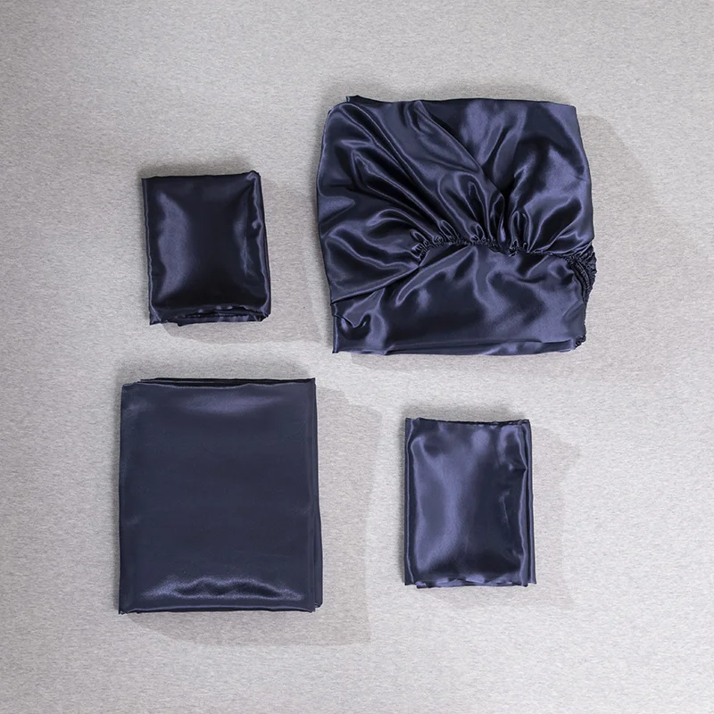Комплект постельного белья из 4 предметов, роскошное черное атласно...