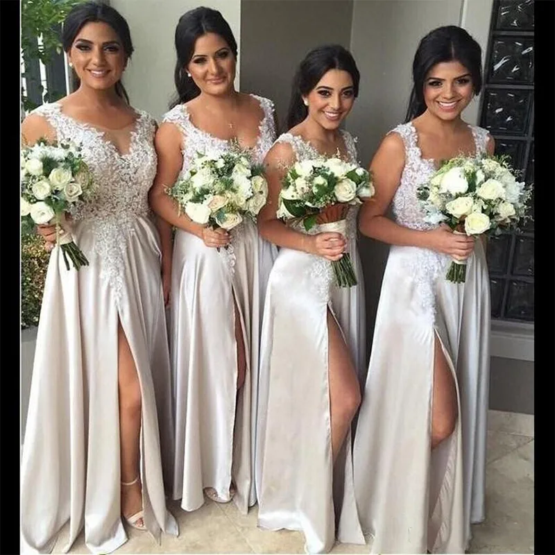 Недорогие пляжные платья подружки невесты с разрезом сбоку, кружевные свадебные платья, длинное платье с аппликацией, длинное платье подружки невесты на заказ, 2021