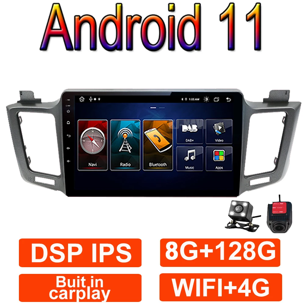 Carplay Android 11 Авто для Toyota RAV4 4 XA40 5 XA50 2012 - 2018 Автомагнитола мультимедийный видеоплеер навигация GPS WIFI 8 + 128G